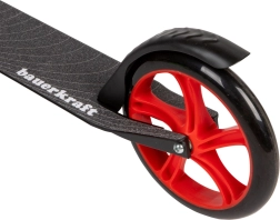 Aizmugurējā kājas bremze vienlaikus kalpo kā dubļusargs, un ergonomiskie rokturi nodrošina stingru satvērienu labākai kontrolei braukšanas laikā.