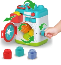 Iepazīstiet burvīgu rotaļlietu, kas apvieno interaktīvu mehānisku darbību ar drošiem, mīkstiem Clemmy klucīšiem. Grozot sānu ripuli, bērni vēro “mazgāšanas” efektu un dabiski trenē roku-acu koordināciju un loģisko domāšanu. Veļas mašīnas realistiskais izskats iedvesmo mājsaimniecības lomu spēlēm.