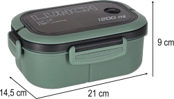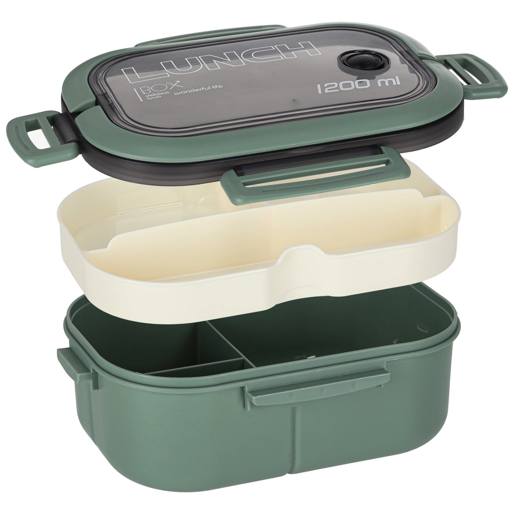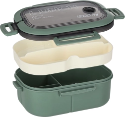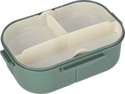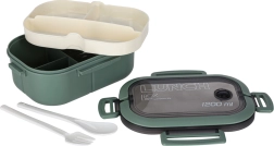 Stilīga un funkcionāla pusdienu kārba zaļos toņos piedāvā 1200 ml ietilpību un pārdomātu iekšējo dalījumu ērtai visa pusdienu komplekta pārnēsāšanai. Pateicoties izņemamajam ielikt nim ar 3 nodalījumiem, porcijas būs ērti atdalītas bez garšu sajaukšanās.