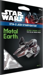 Uzcel ikonisko STAR WARS Eta‑2 Jedi Starfighter no precīzi izgrieztiem tērauda loksnēm. 3D puzle METAL EARTH piedāvā detalizētu lāzergravējumu, iespaidīgu izskatu un aizraujošu izaicinājumu pacietīgiem veidotājiem. Gatavais modelis ir dekoratīvs kolekcionāru gabals uz statīva, kas izcelsies uz jebkuras plaukta.