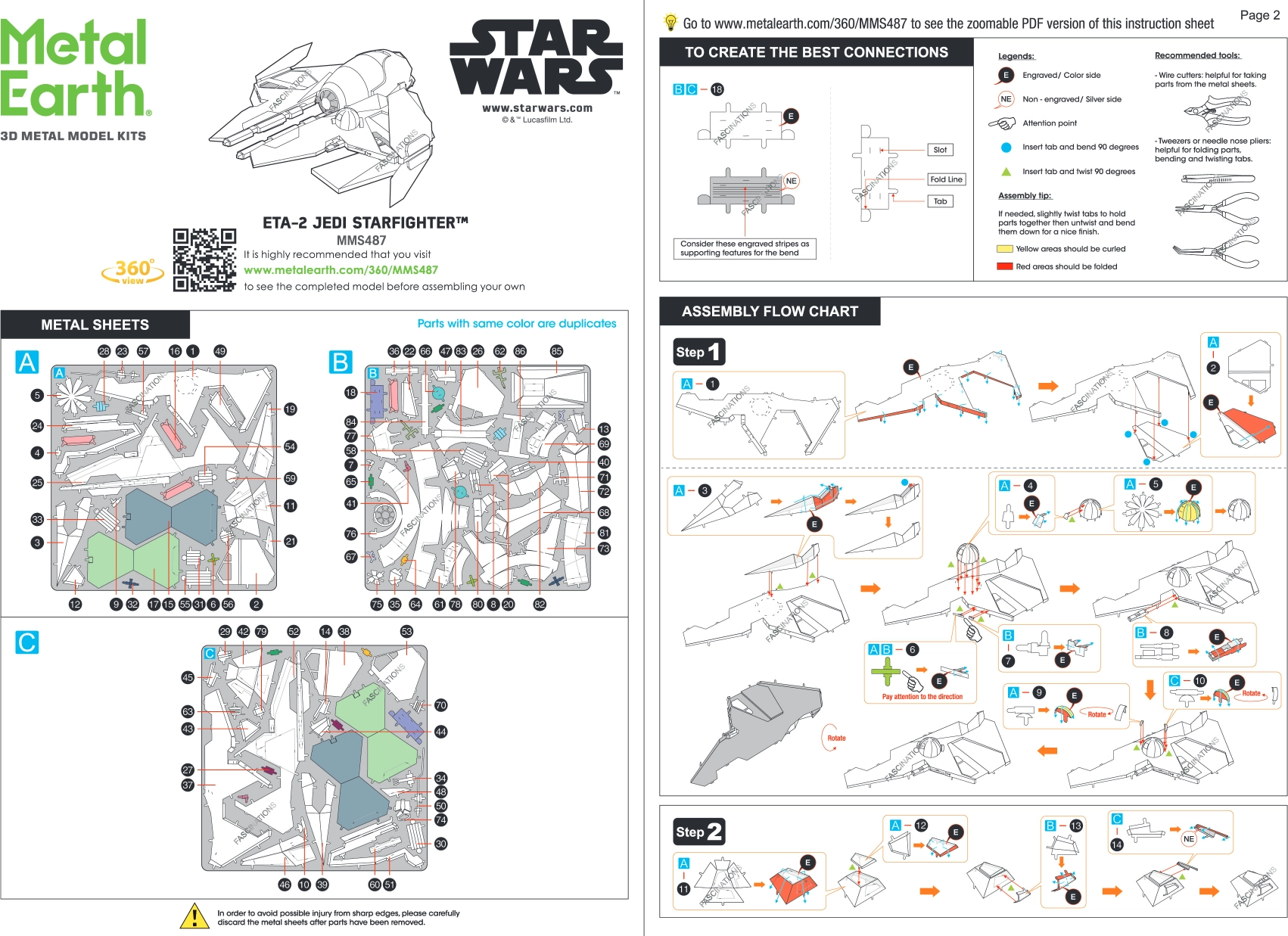 Atklāj precīzas metāla konstrukcijas prieku un uzcel leģendāro iznīcinātāju Eta‑2 Jedi Starfighter no STAR WARS pasaules. Komplektā METAL EARTH ir nerūsējošā tērauda loksnes ar smalku lāzergravējumu, kas rada realistisku modeli ar bagātīgām detaļām, tostarp spārnu paneļiem un kabīni.