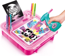 Komplekts ir izstrādāts, lai sagādātu prieku gan mājās, gan ceļā. Ergonomiskais airbrušs darbojas ar 2× AA baterijām (nav iekļautas komplektā), tāpēc nav nepieciešama kontaktligzda. Pievienotie šabloni palīdz ar pirmajiem motīviem, bet krāsainie flomāsteri nodrošina spilgtus rezultātus bez nekārtības.
