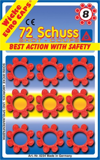Praktiskas kapsulas bērnu rotaļu pistolēm ar 8 šāvieniem nodrošina daudz izklaides un reālistisku skaņu. Iepakojumā ir 9 diski, kopā 72 šāvieni ilgstošai spēlei un vienkāršai ielādēšanai.