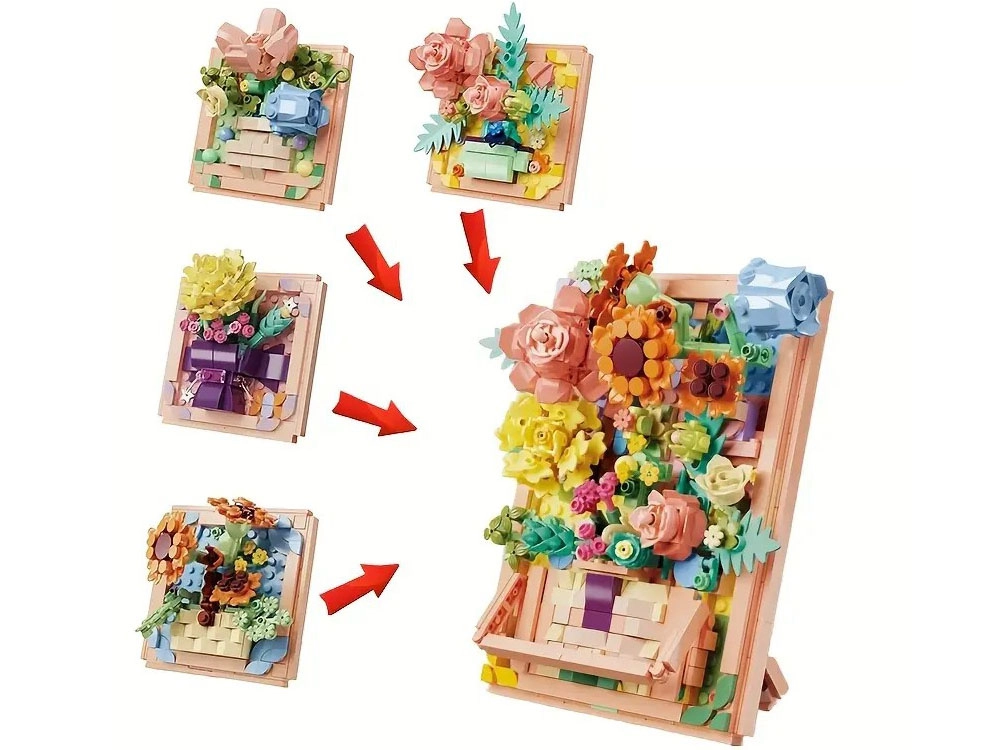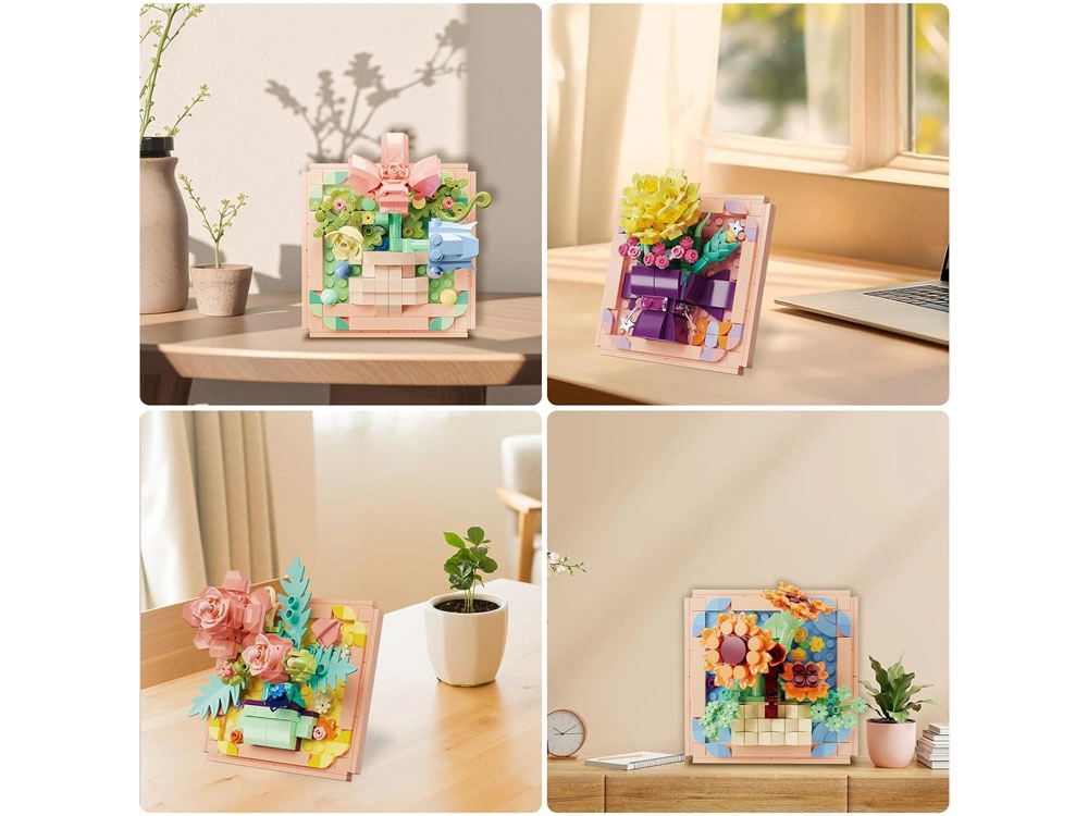 Izveidojiet savu ziedu mākslu no vairāk nekā 200 būvdetaļām un pārvērtiet mājokli par ziedošu galeriju. Katrs komplekts piedāvā 3D ziedu kompozīciju rāmītī, dzīvīgas krāsas, stabilu konstrukciju un dekoratīvu izvietojumu uz plaukta vai sienas. Ideāli piemērots radošai atpūtai, kopīgai darbnīcai un ilgstošai dekorācijai, kas nekad nenovīst.