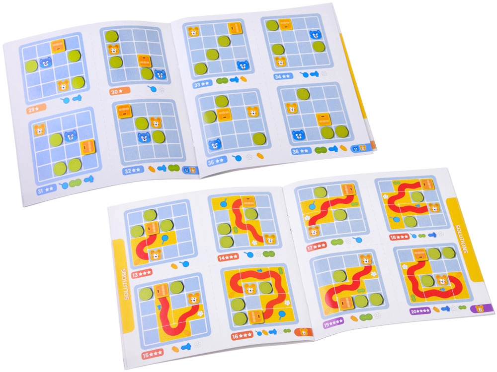 Pakāpeniska grūtības palielināšana četros līmeņos māca bērniem plānot maršrutus, domāt uz priekšu un risināt problēmas soli pa solim. Katram uzdevumam ir viens pareizs risinājums.