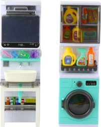 Šis detalizēti izstrādātais mājas vannas istabas komplekts piedāvā visu ticamai spēlei: izlietni ar spoguli, priekšpusē pildāmu veļasmašīnu, uzglabāšanas skapīti un bagātīgu piederumu klāstu. Spogulis iedegas pēc baterijas ievietošanas, bet veļasmašīna rada gaismas un skaņas efektus, kas pastiprina reālistisku iespaidu.