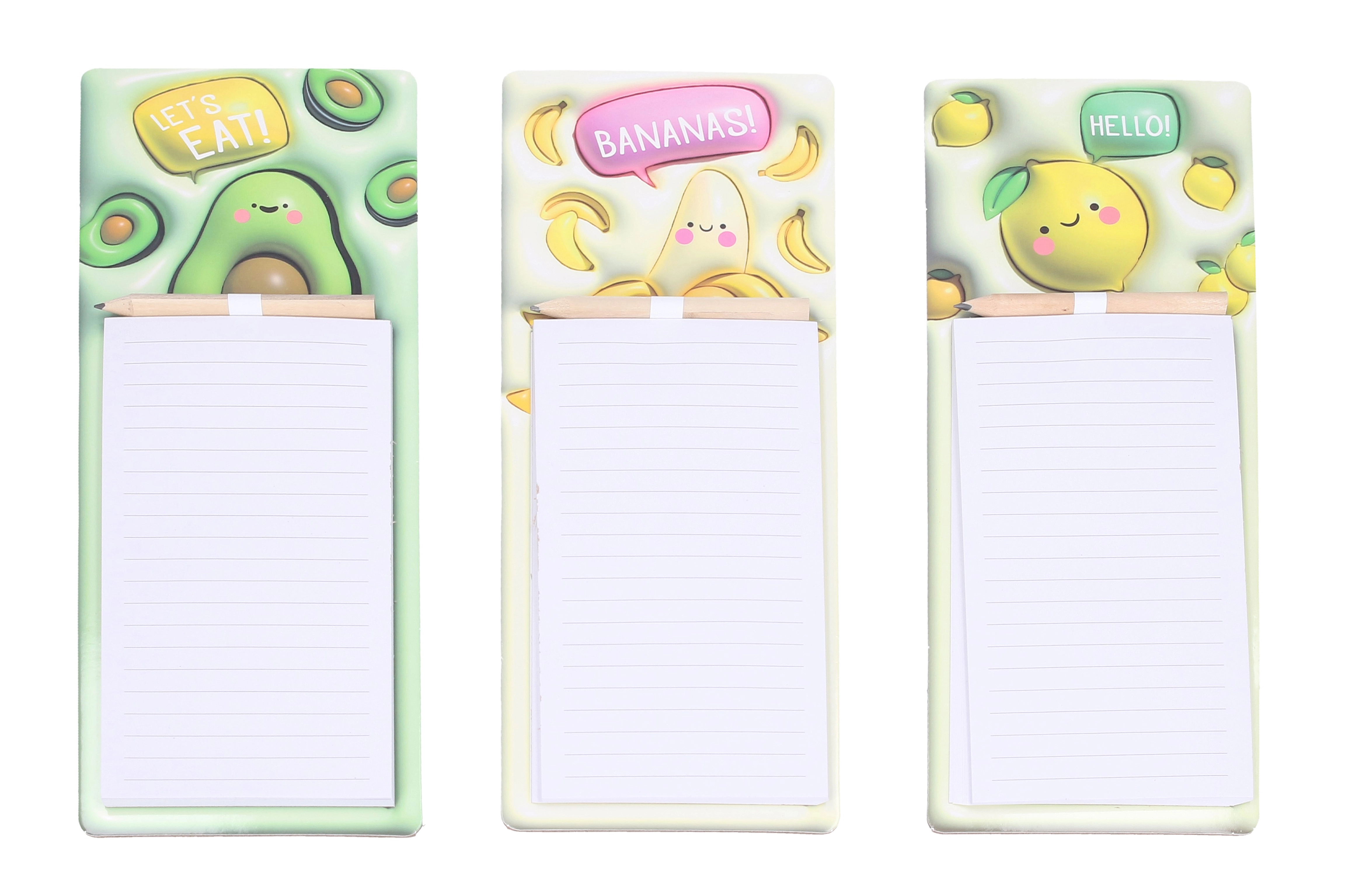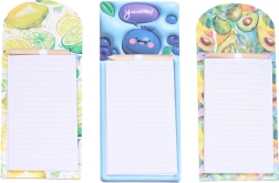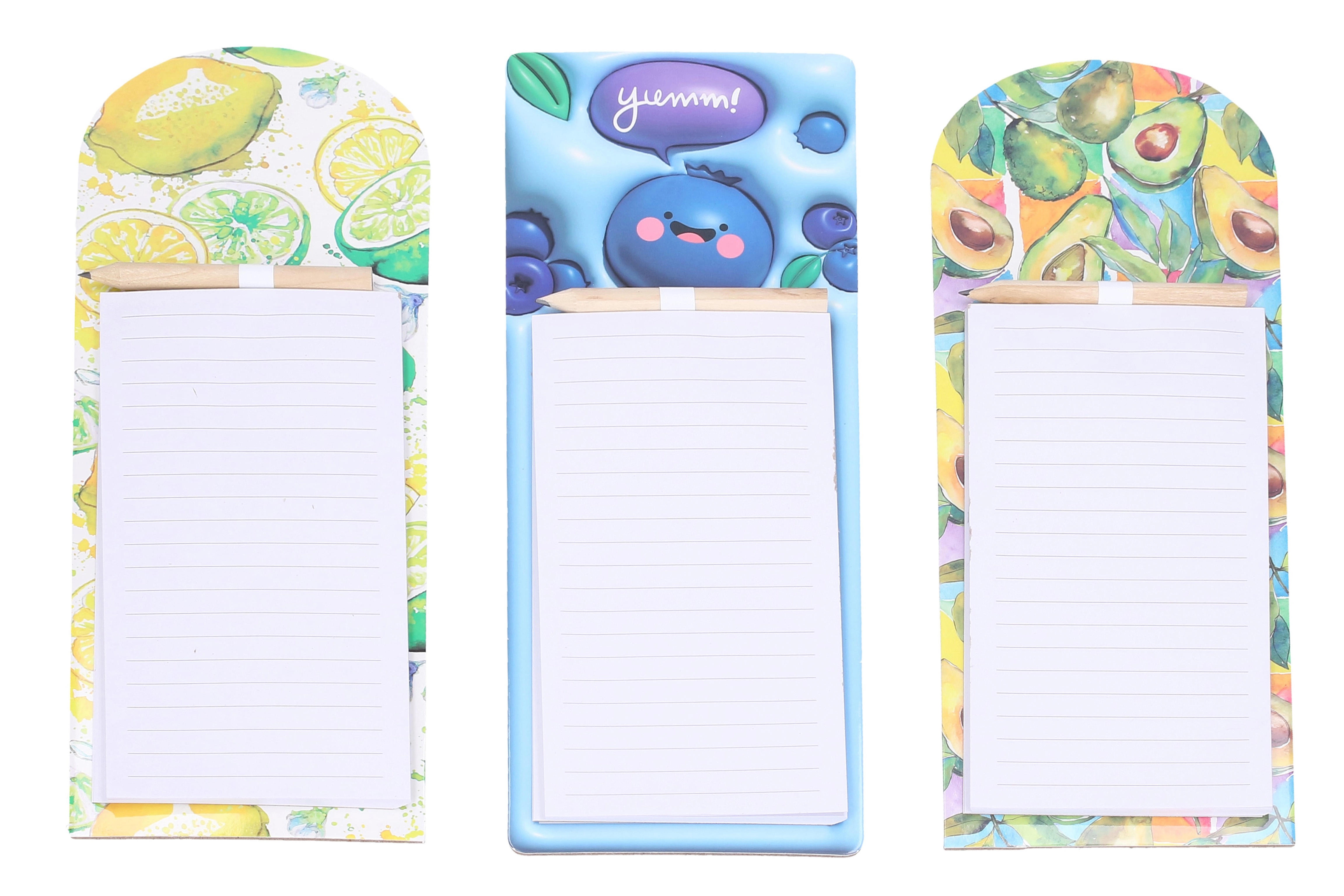Ieviesiet kārtību iepirkumos un ikdienas darbos ar magnētiskajiem blokiem ar jautriem augļu motīviem. Pateicoties stiprajam magnētam, tos viegli piestiprināt pie ledusskapja vai citām metāla virsmām, lai tie vienmēr būtu pa rokai. Komplektā ir ērts zīmulis, kas ievietots augšpusē, lai varētu rakstīt jebkurā brīdī bez meklēšanas.