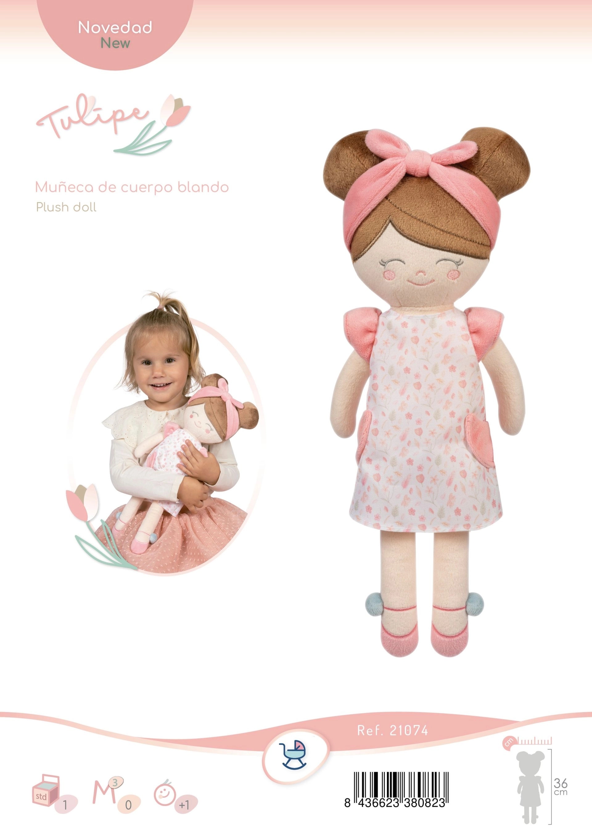 Mīlīgā pūkainā lelle Tulipe 36 cm ir ideāla pirmā draudzene pašiem mazākajiem. Tā ir izgatavota no maiga, gluda plīša, ir ļoti viegla un, pateicoties roku mazgāšanai 30 °C, to ir viegli kopt. Pasteļtoņu laškrāsas nianses un ziedu detaļas no Tulipe kolekcijas piedāvā skaistu spāņu dizainu un maigu mīļošanos gan mājās, gan ceļā.