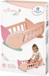 Abas šūpulīša gala daļas veidotas tulpes formā, kas kombinācijā ar siltiem laškrāsas pasteļtoņiem rada maigu, mūsdienīgu izskatu. Šūpulītis ir stabils, izturīgs un, pateicoties kvalitatīviem materiāliem, viegli kopjams. Perfekta izvēle ikdienas rotaļām un kā dizaina akcents bērnistabā.