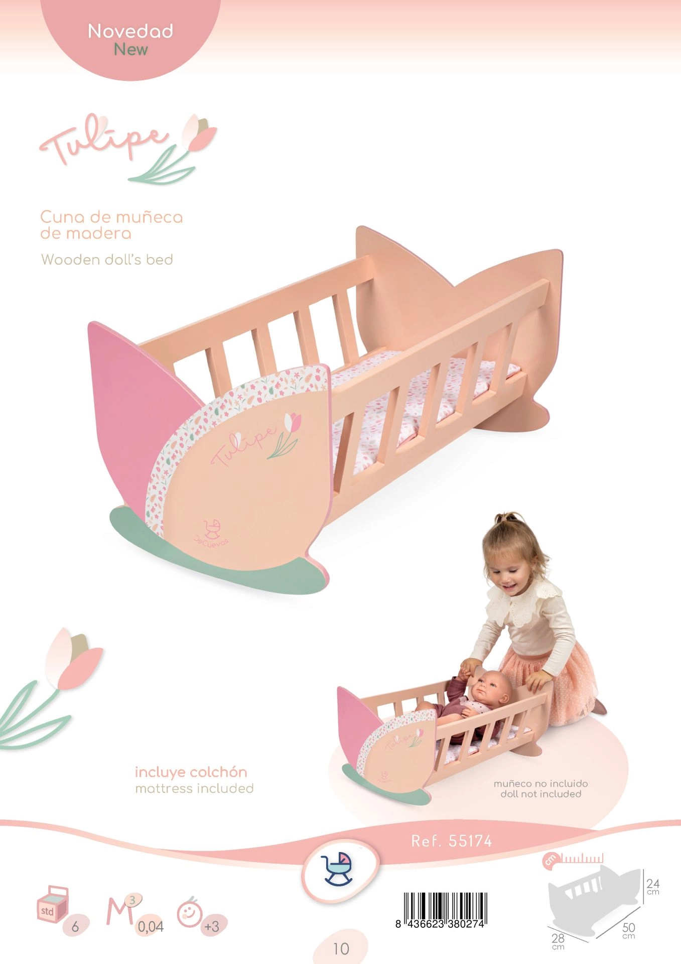 Šūpulītis iepakots kolekcijas krāsu kastē un iepriecinās katru mazo leļļu mammu, kas novērtē skaistu spāņu dizainu un uzmanību detaļām.