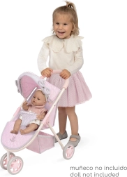 Ratiņiem ir pagriežams priekšējais dubultritenis vieglai manevrēšanai, droša trīspunktu josta un glabāšanas vieta apakšējā daļā. Tie nodrošina pietiekami daudz vietas lellēm līdz 45–46 cm un ir iepakoti dāvanu kastē kolekcijas krāsās. Uz iepakojuma atradīsiet QR kodu ar video instrukciju montāžai.