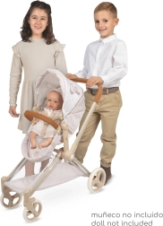 Ratiņi ir saliekami, salocītā veidā aizņem minimāli daudz vietas un ir ērti pārvadāšanai. Noņemamā pārnēsājamā kulbiņa ļauj droši pārnēsāt lelli, savukārt regulējamais jumtiņš, trīspunktu jostas un grozāmie priekšējie riteņi nodrošina ērtu un vienmērīgu braucienu. Komplektā ir stilīga soma un apakšējais grozs visām nepieciešamajām lietām.