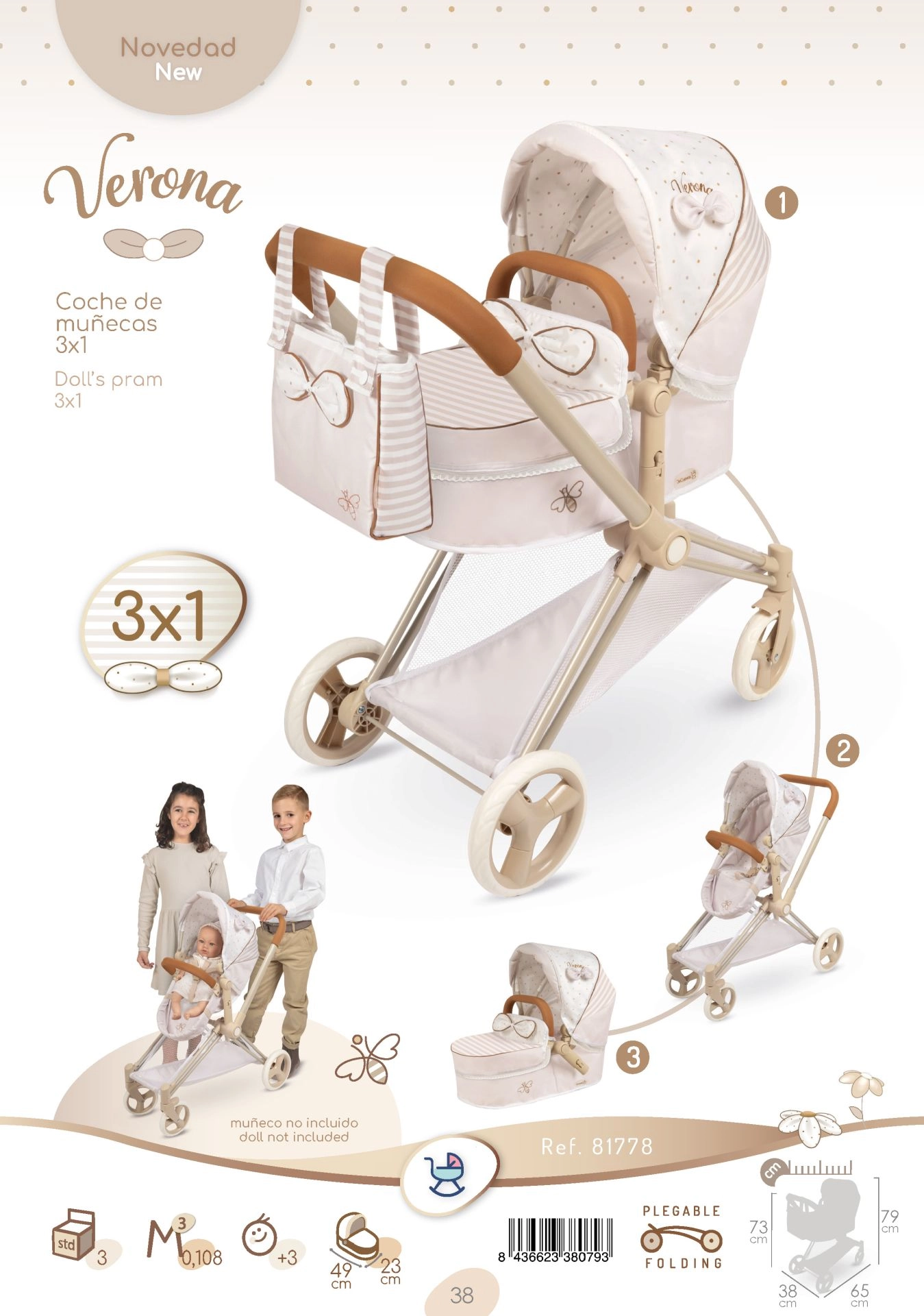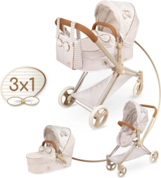 Elegantīgie bērnu leļļu ratiņi 3 vienā no kolekcijas VERONA iepriecina ar maigu dabisku dizainu, saliekamu konstrukciju un noņemamu dziļo kulbiņu, ko var pārvērst sporta versijā. Tie piedāvā regulējamu jumtiņu, trīspunktu jostu, grozāmos priekšējos riteņus vieglai vadāmībai, kā arī praktisku somu un uzglabāšanas grozu. Lieliska izvēle bērniem no 3 gadu vecuma.