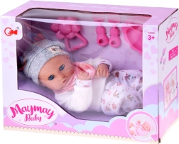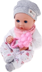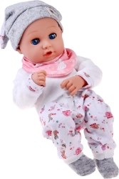 Šī lelle ir izgatavota no patīkama, mīksta materiāla ar plastmasas galvu un rokām izturībai. Apģērbs maigos toņos ietver pelēku cepurīti, mīgu blūzīti, rakstainas bikses un pelēkas zeķītes. Pateicoties kustīgajiem plakstiņiem, lelle pārliecinoši atdarina miegu un modrību, veicinot dabisku rūpību un empātiju.