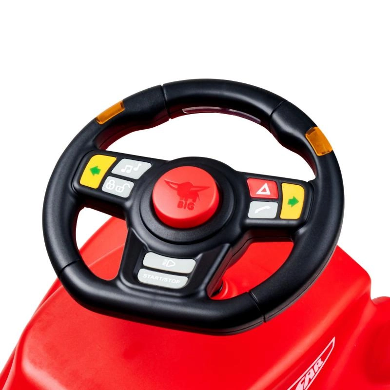 Multifunkcionālā BIG stūre pārvērš katru braucienu ar līdzsvara mašīnīti īstā piedzīvojumā. Bērniem patiks LED pagriezienu rādītāji, signāliņš, iedarbināšanas skaņa, radio un citi reālistiski efekti. Pateicoties ūdensizturīgajam dizainam, tā ir piemērota arī spēlēm ārā.