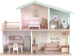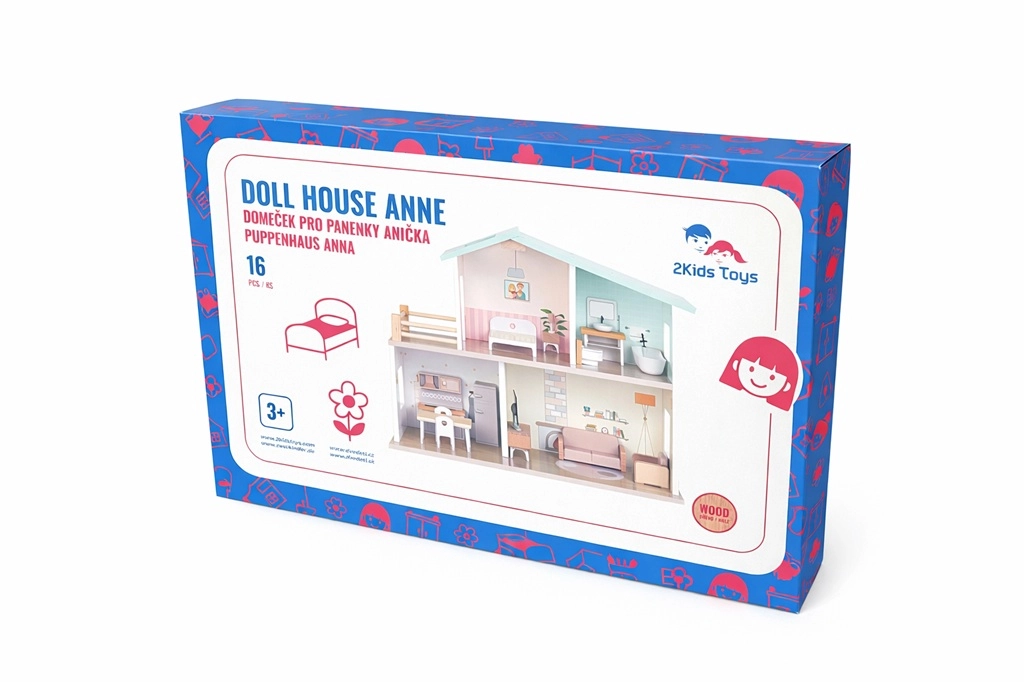 Atklājiet 2Kids Toys skaisto koka leļļu māju Anička ar diviem stāviem, balkonu un pilnībā aprīkotām istabām. Pateicoties 16 mēbeļu un aksesuāru detaļām, bērni baudīs stundām ilgas radošas lomu spēles, attīstot iztēli un sociālās prasmes. Augstas kvalitātes koka izpildījums, maigas krāsas un stabila konstrukcija padara to par skaistu papildinājumu bērnistabai. Iekļauts montāžas ceļvedis; māja tiek piegādāta izjauktā veidā. Piemērots no 3 gadiem.