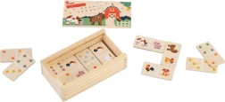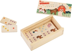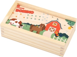 Atklājiet divpusējā koka fermas domino burvību, kas piedāvā divus izklaides veidus vienā spēlē. Mazāki bērni liek pēc jautriem dzīvnieciņu attēliem, lielāki spēlē klasisko punktiņu domino un dabiski trenē skaitīšanu un loģiku. Kvalitatīvs dabisks koks, patīkamas pasteļkrāsas un praktiskais koka kārbiņš ar vāciņu padara to par skaistu un izturīgu rotaļlietu bērniem no 2 gadu vecuma.