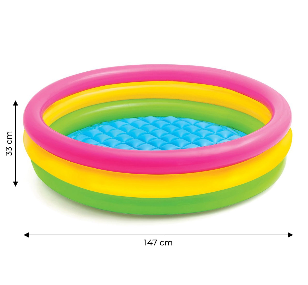 Uzpūšamais bērnu baseins ar diametru 147 cm un augstumu 33 cm ir ideāla izvēle karstām vasaras dienām. Spilgtās rozā, dzeltenās un zaļās krāsas piesaista uzmanību un pārvērš jebkuru vietu mazā ūdens valstībā.