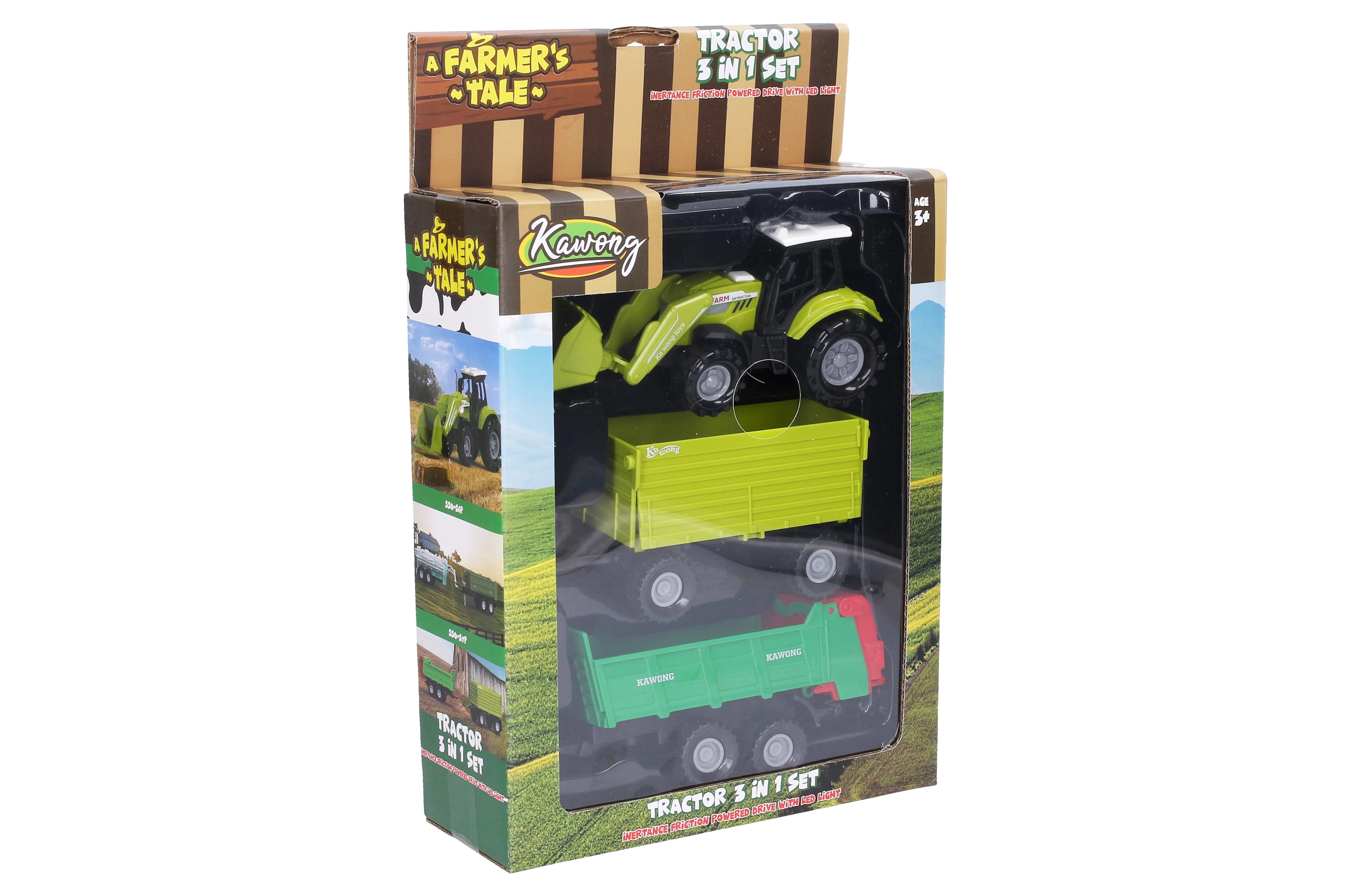 - Pilns komplekts: traktors + 2 piekabes daudzveidīgai spēlei.