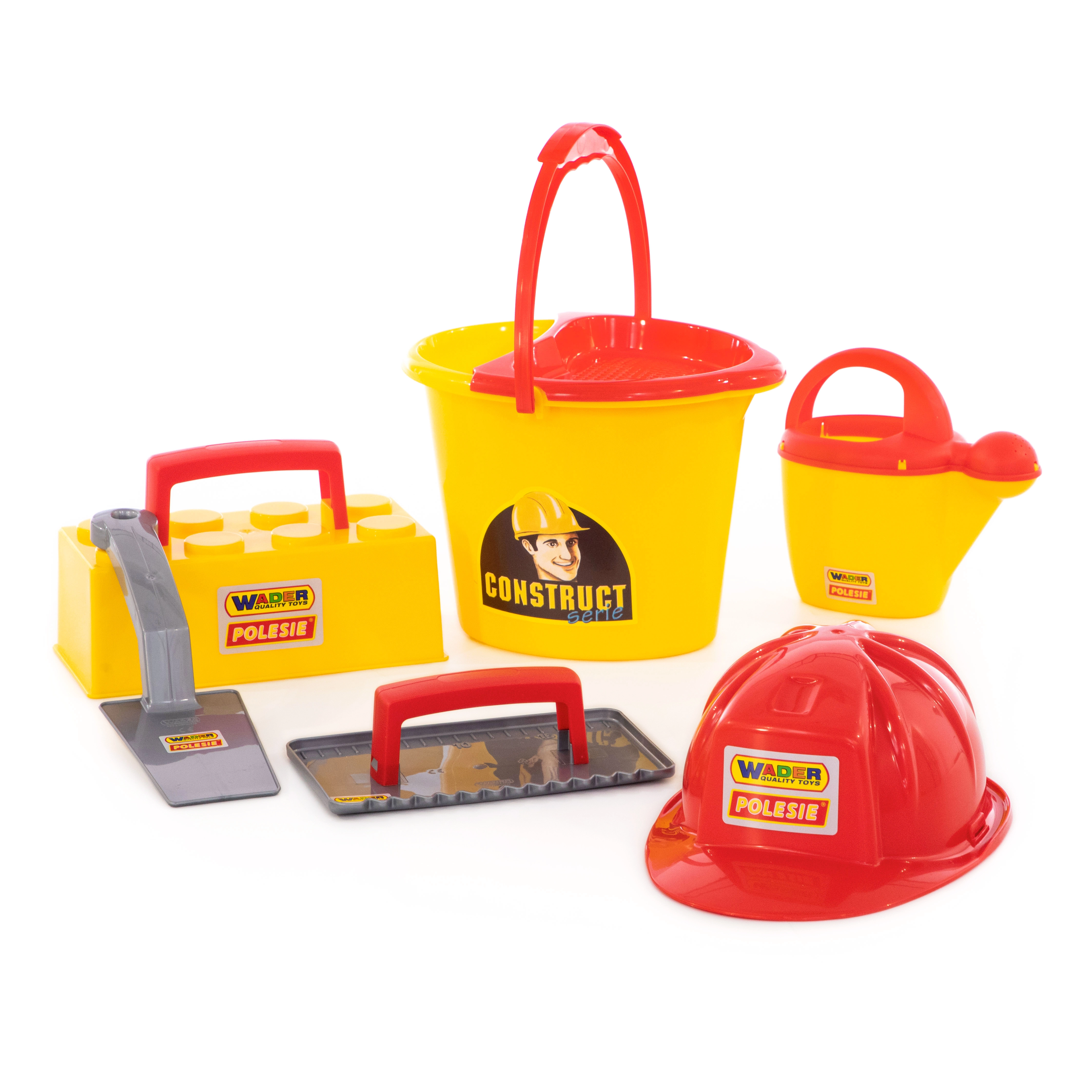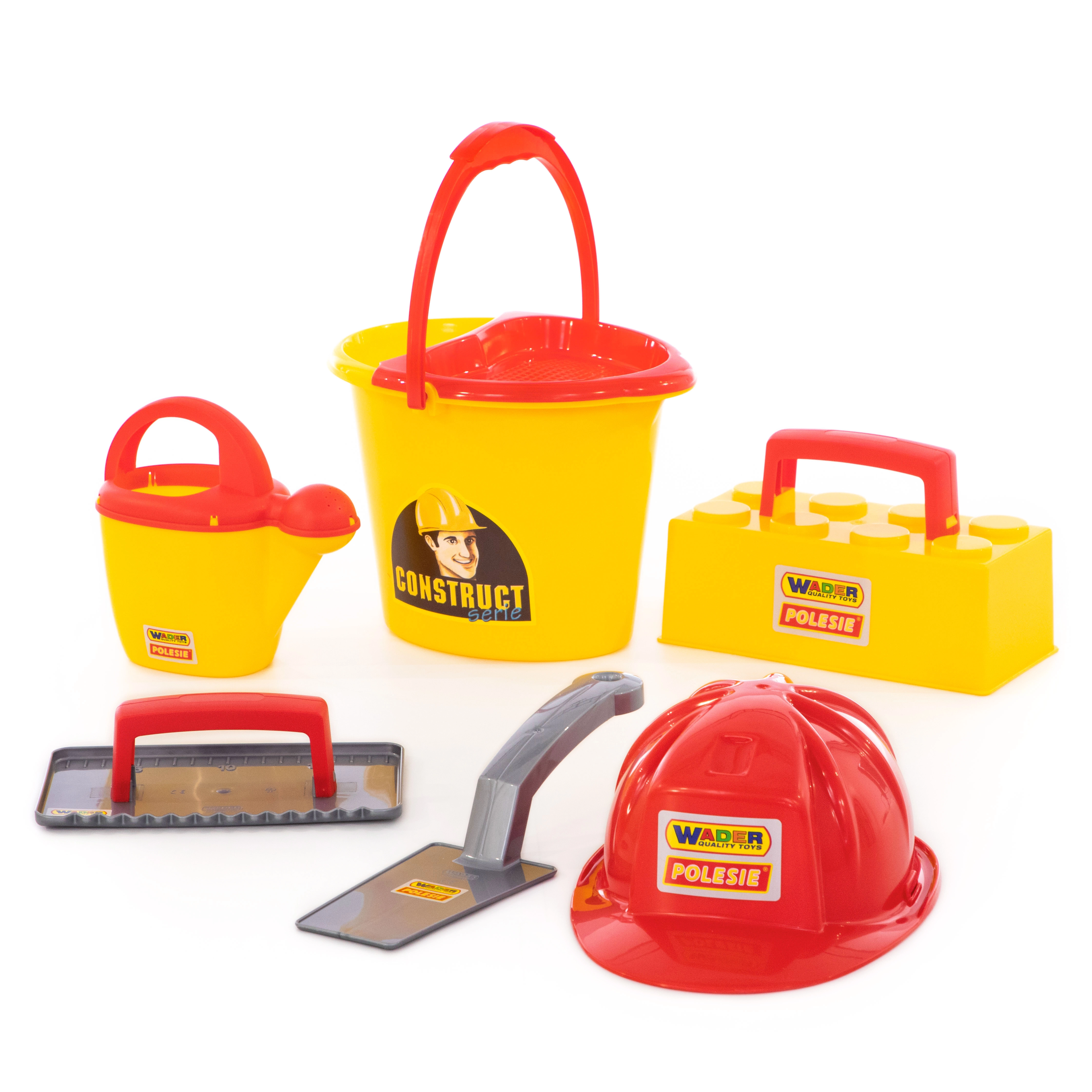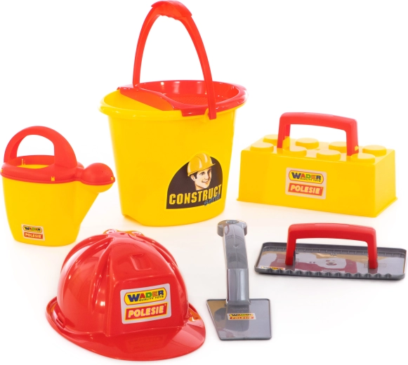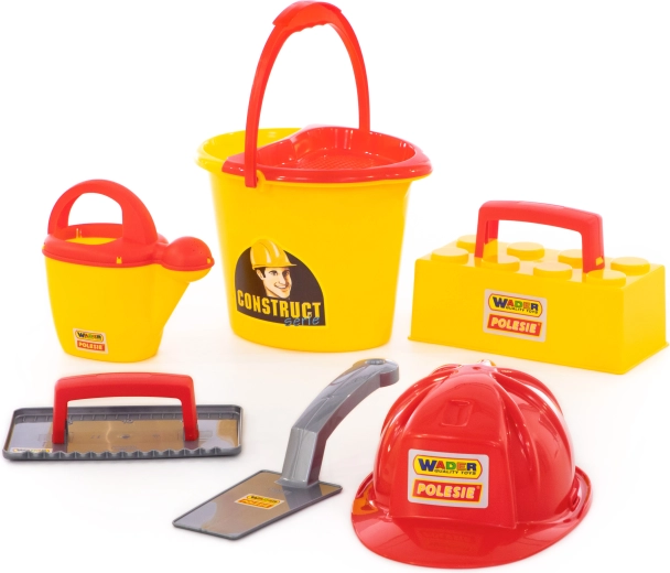 Šis Wader ConsTruct mūrēšanas būvkomplekts pārvērš jebkuru smilšu kasti mazā būvlaukumā. Bērni var smelt, pārvadāt, veidot un “mūrēt” savus darinājumus ar ķieģeļu formas palīdzību, bet ķivere palīdz autentiskai lomu spēlei. Viegls un izturīgs plastmasas materiāls ar gludām malām ir ideāli piemērots drošai spēlei ārā un pie ūdens.