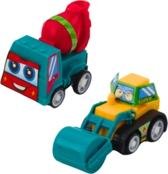 Šis košais komplekts sniedz bērniem bezgalīgas spēļu iespējas: izlaid kravas pašizgāzēju, čaklu betona maisītāju, dinamisku ekskavatoru, izturīgu buldozeru un citus mehānismus mazajiem būvniekiem. Pateicoties pull-back piedziņai pietiek mašīnīti pavilkt atpakaļ un atlaist – tā pati dosies uz priekšu.