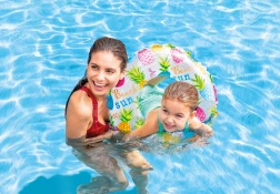 Viegls un izturīgs uzpūšams riņķis INTEX ar 61 cm diametru ir lieliski piemērots spēlēm ūdenī un pirmajiem soļiem peldētapmācībā. Izgatavots no izturīga PVC (0,18 mm), ar krāsainiem motīviem un ērtu satvērienu. Raksts tiek izvēlēts nejauši.