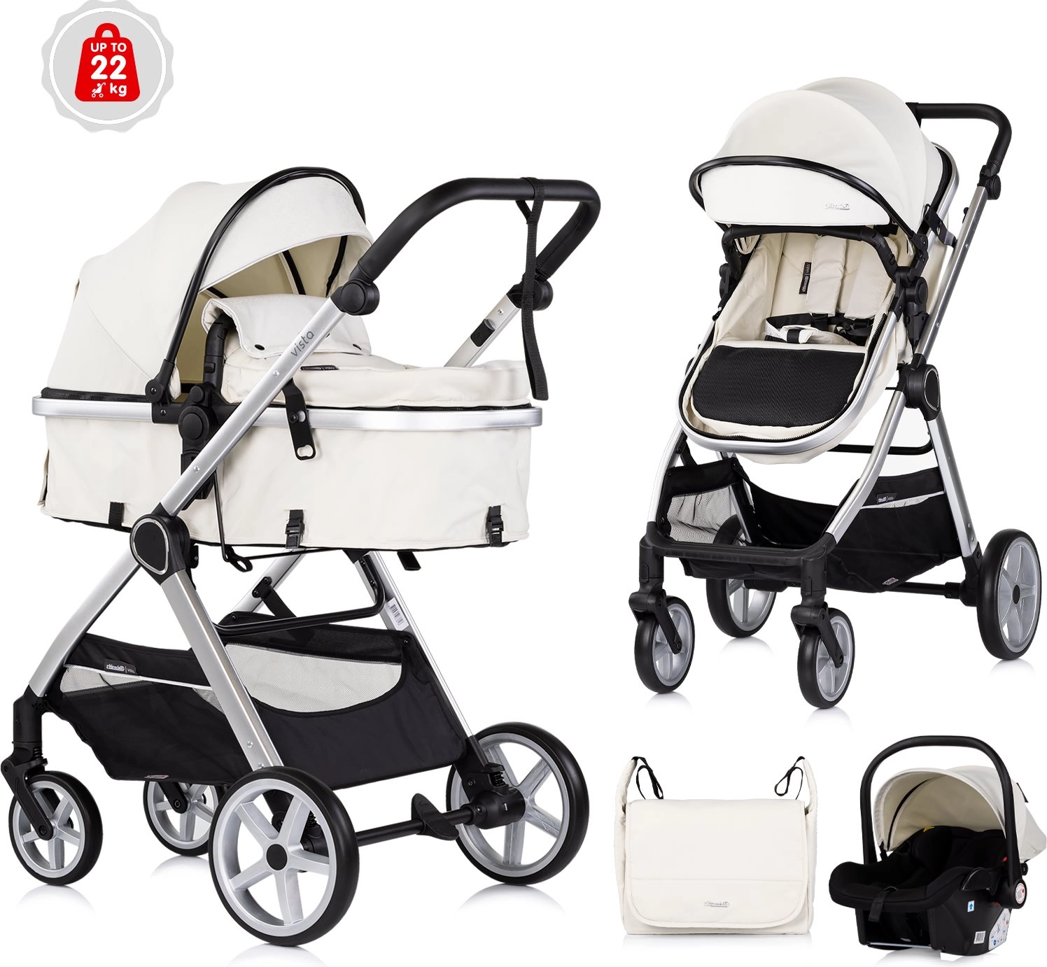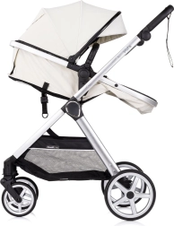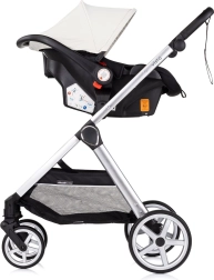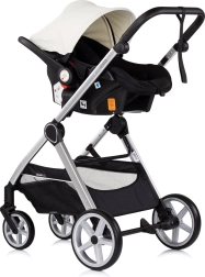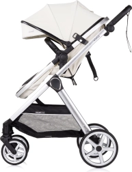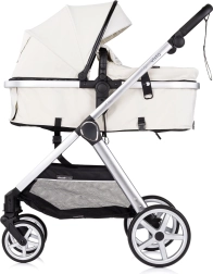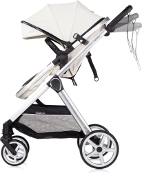 Eleganti un praktiski 2-in-1 ratiņi jaundzimušajiem un mazuļiem ar vieglu alumīnija rāmi, pagriežamu sēžamo daļu (braukšanas virzienā un pretēji tam) un iespēju pārveidot par dziļo kulbu. Piedāvā pilnu visu riteņu amortizāciju, augstumā regulējamu rokturi ar drošības siksnu, regulējamu jumtiņu ar saulessargu un lodziņu, kā arī plašu grozu. Komplektā ir polsterēts kāju pārsegs un pārtinamā soma.