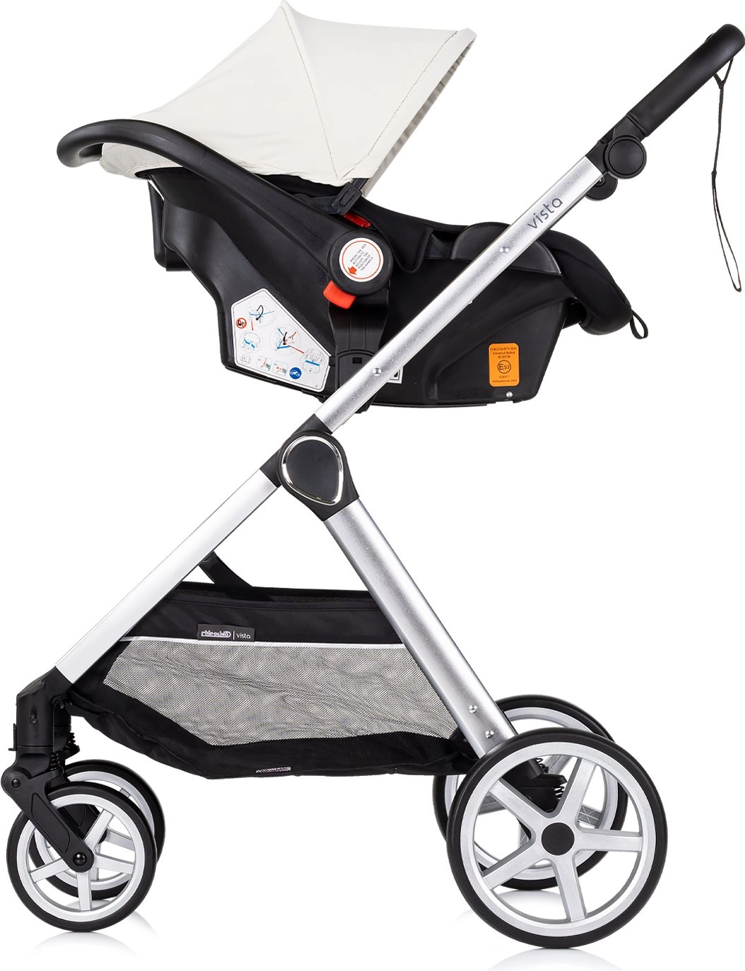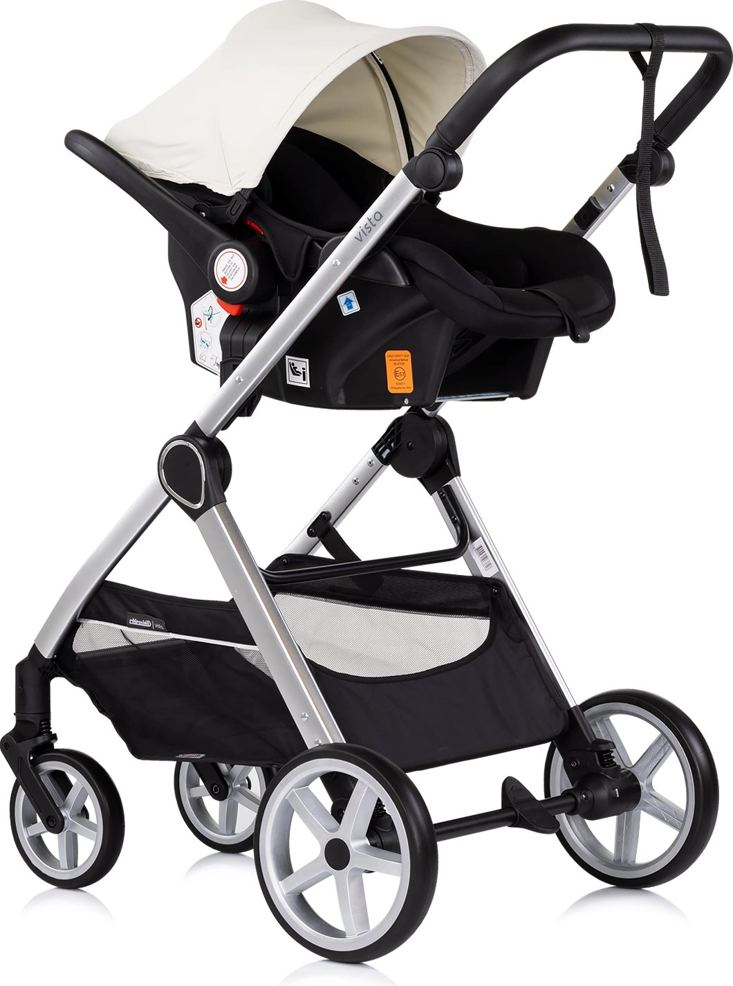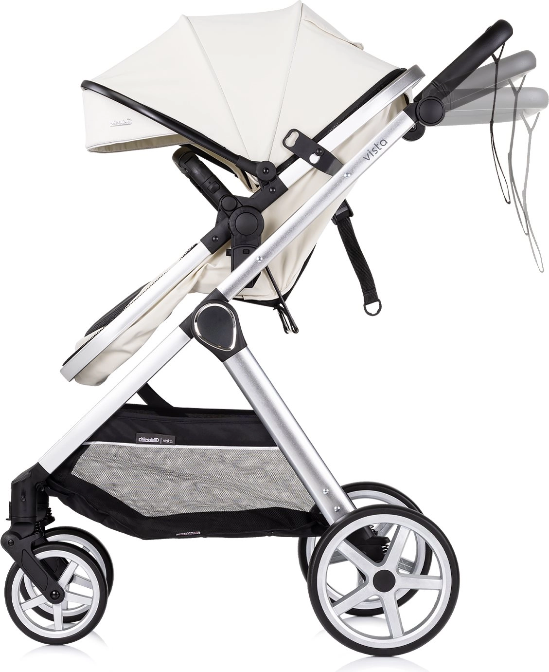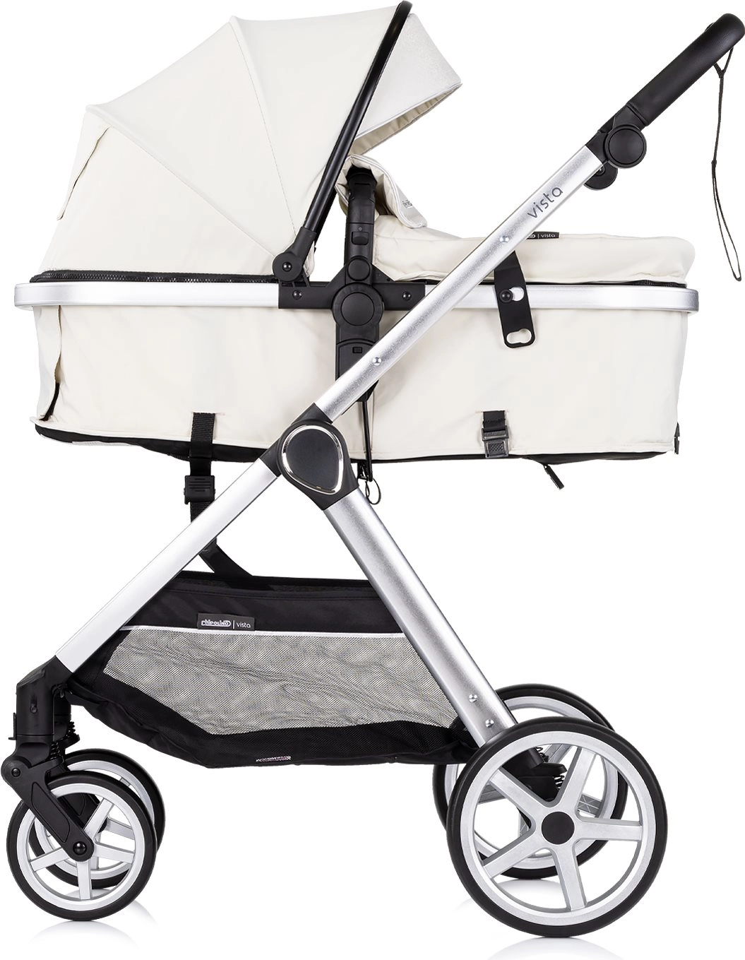 CHIPOLINO Vista 2-in-1 Biscotta ir stilīgi kombinējamie ratiņi, kas viegli pielāgojas vecāku ikdienas vajadzībām. Sēžamo daļu acumirklī var pārvērst ērtā kulbā jaundzimušajam, un iespēja uzlikt sēdekli braukšanas virzienā vai pretēji tam nodrošina bērnam komfortu un kontaktu.
