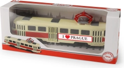 Šis metāla retro tramvajs T3 ir Prāgas ielu ikona un sabiedriskā transporta leģenda. Tas izceļas ar detalizētu virsbūves izpildījumu, reālistiskiem logiem un funkcionālu pantogrāfu uz jumta. Pateicoties atpakaļgaitas mehānismam, pēc uzvilkšanas tas vienmērīgi kustas un iepriecinās gan bērnus, gan pieaugušos kolekcionārus.