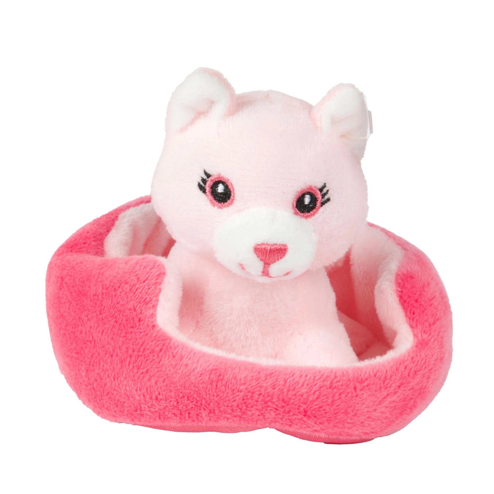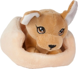 Mīlīgs mīksta materiāla rotaļlietu dzīvnieciņš ērtā guļvietā dāvās bērniem stundām ilgu prieku. Tas ir maigs pieskārienam, viegls un ideāli piemērots mīļošanai un spēlēm par mājdzīvniekiem. Drošs izpildījums ar izšūtiem detaļām bez cietām daļām, piemērots no 2 gadu vecuma.