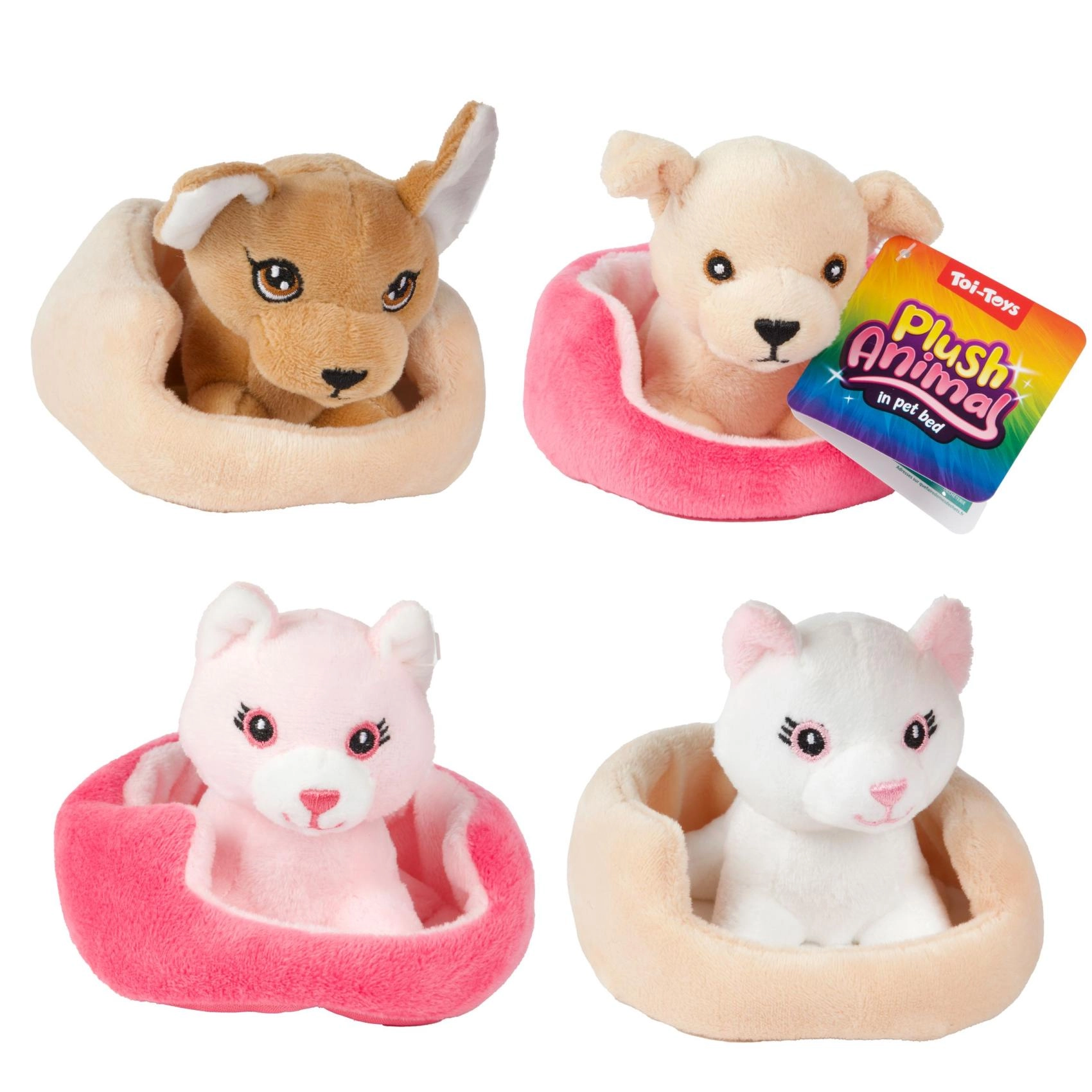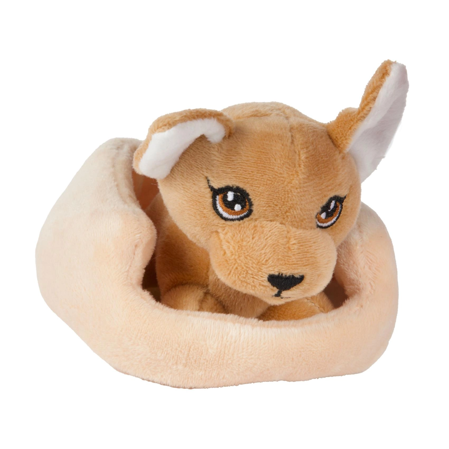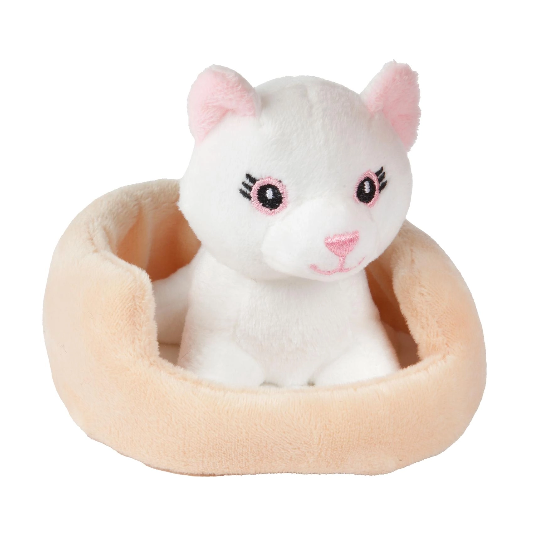 Šī mīlīgā plīša kaķenīte vai sunītis ērtā guļvietā ir ideāls draugs ikdienas rotaļām un iemigšanai. Pateicoties mīkstajam plīša audumam un kompaktajam izmēram, to viegli satvert arī pašām mazākajām rociņām, turklāt tas veicina iztēli un gādīgas lomu spēles.