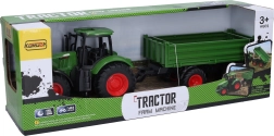 Izturīgs traktors ar piekabi mazajiem zemniekiem piedāvā brīvgaitas riteņus vienmērīgai braukšanai, nolaižamas piekabes durtiņas ērtai iekraušanai un izmērus 42 × 10,5 × 13 cm, kas lieliski piemēroti spēlēm mājās un ārā.