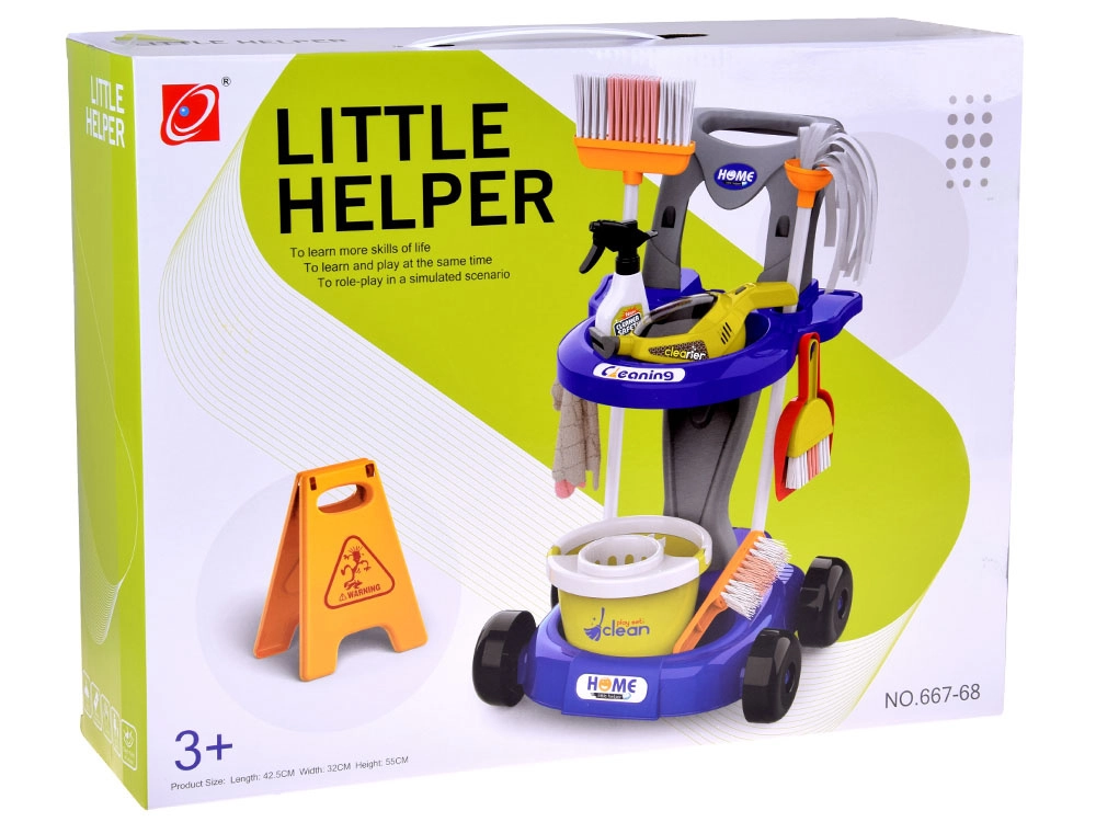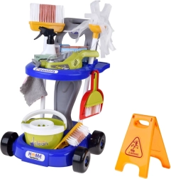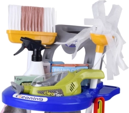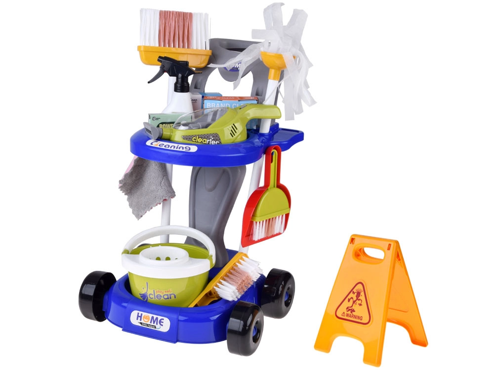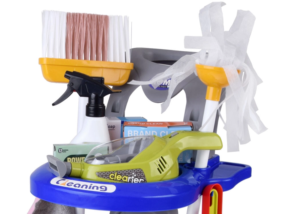 Sniedziet bērniem reālistisku izklaidi ar uzkopšanas ratiņiem, kas pilni piederumu. Komplektā ir mops, slota, birstīte ar skrāpi, spainis ar izgriezēju, lupatiņa, smidzinātājs, brīdinājuma zīme, kartona kastītes un rotaļu putekļsūcējs ar maināmiem uzgaļiem un lodītēm “uzsūkšanai”. Bērni droši atdarinās pieaugušo ikdienas darbības un apgūs, cik svarīgi ir uzturēt kārtību.