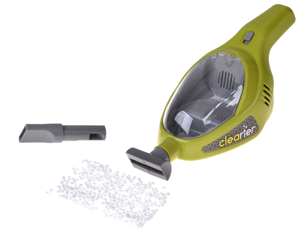 Rotaļu putekļsūcējs ar divām uzgaļu galviņām un lodītēm “uzsūkšanai” sniedz bērniem reālistisku pieredzi un motivē aktīvai spēlei.