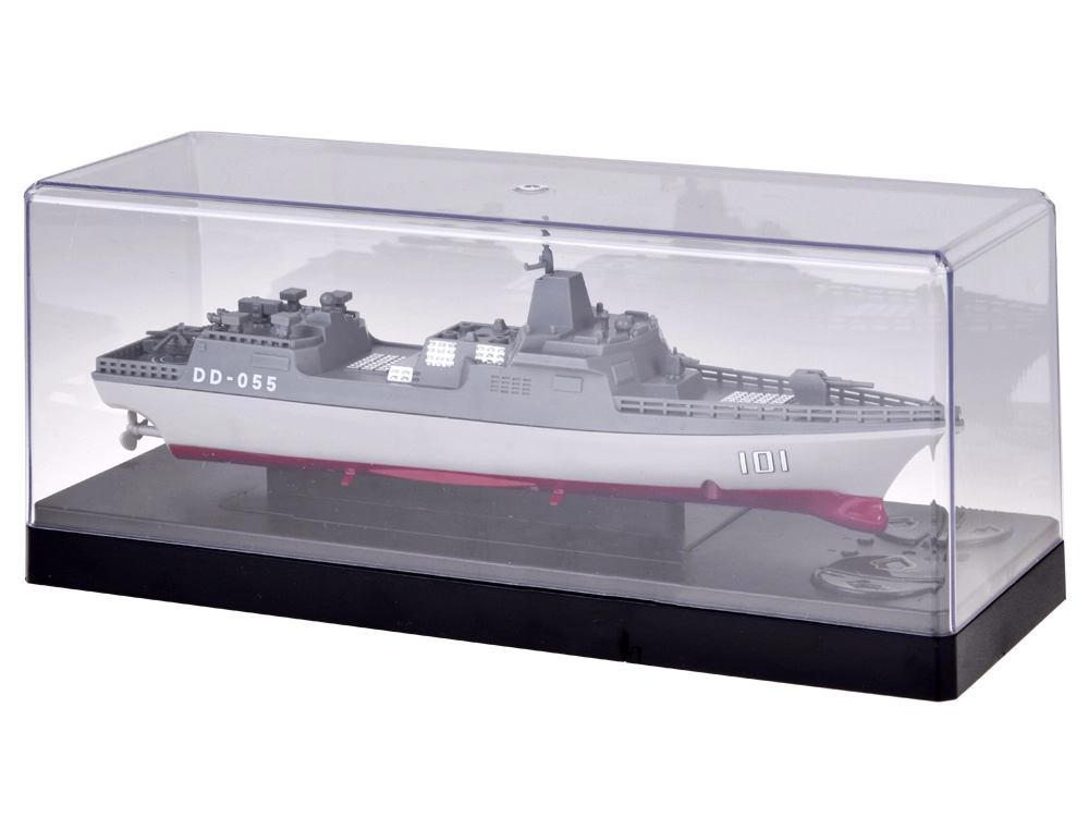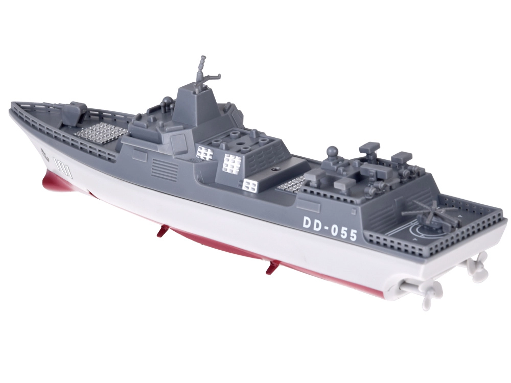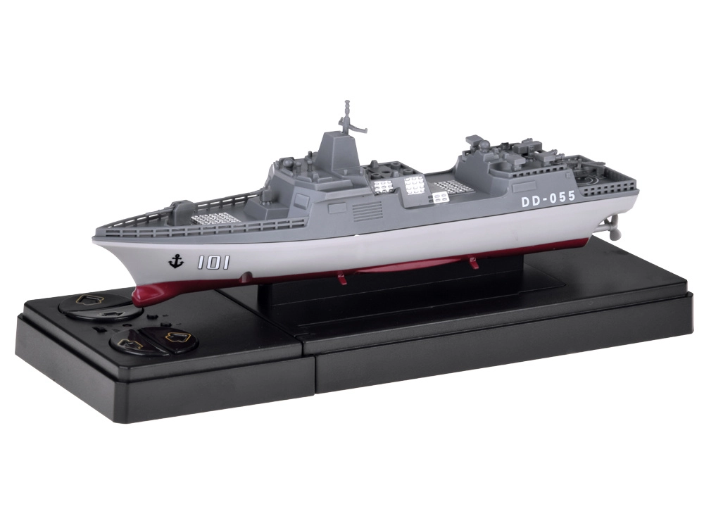 Atklājiet okeānu spēku ar RC torpēdkutkeli DD-055. Pelēki sarkanā krāsu salikumā kuģis uzticami atdarina modernu raķešu torpēdkutkeli un izceļas ar bagātīgām detaļām – no klāja elementiem līdz pat helikoptera nosēšanās laukumam. Kompaktā izmēra dēļ tas ir lieliski vadāms un vienlaikus izskatīgi izceļas plauktā mini vitrīnā, kas ir iekļauta komplektā.
