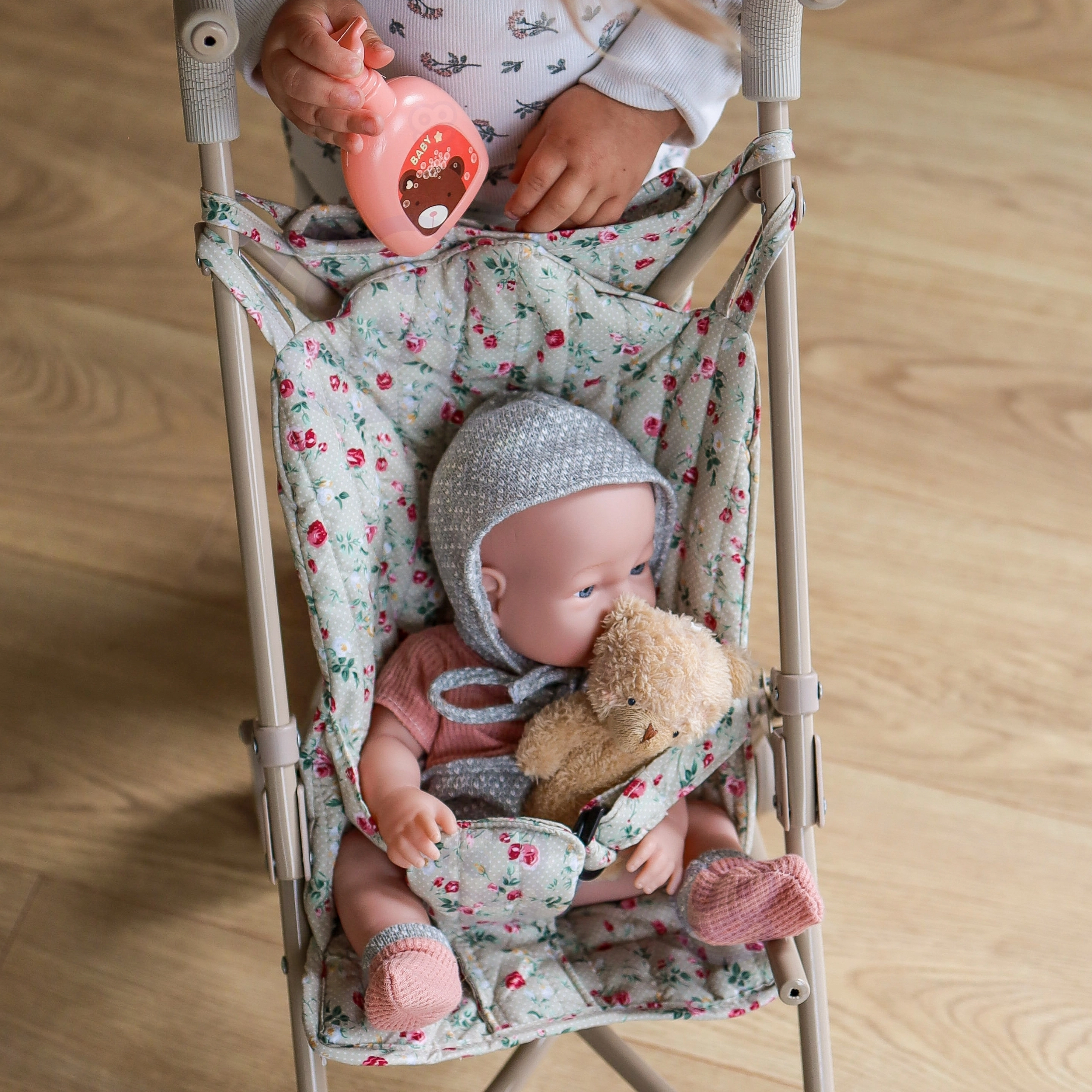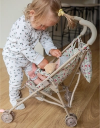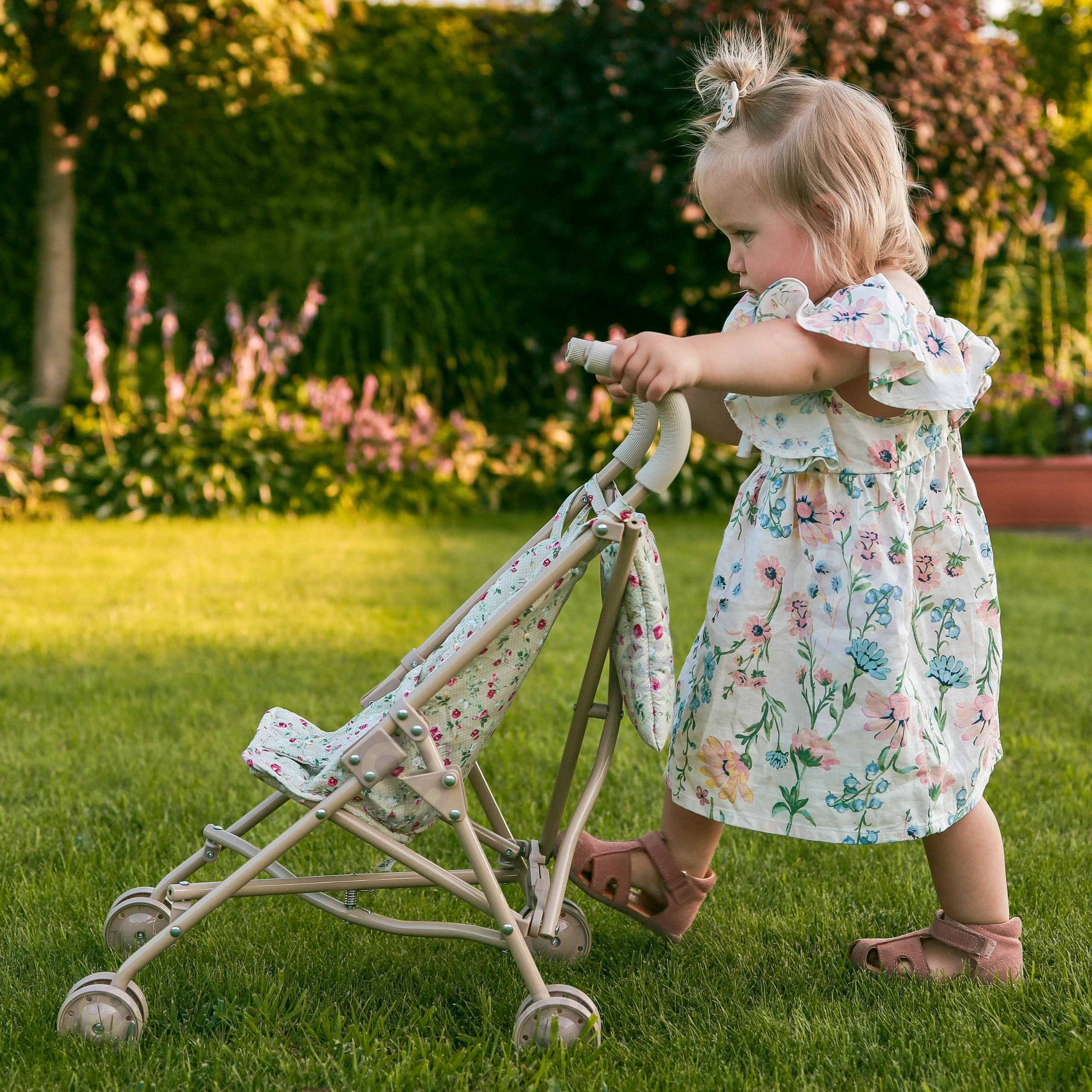 Stilīgi leļļu ratiņi ar krēmkrāsas ziedu audumu no zīmola WOOPIE ir viegli, ērti salokāmi un ideāli spēlēm gan mājās, gan ārā. Šasija ar dubultajiem riteņiem un ērti rokturi bērnu rokām nodrošina plūdenu braukšanu. Lieliska dāvana, kas attīsta iztēli, empātiju un sīko motoriku bērniem.
