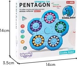 Woopie Magic Beans Puzzle Pentagon piecstaru zieda formā apvieno relaksu un gudru izklaidi. Krāsainās lodītes pārvietojas pa sliedēm pulksteņrādītāja virzienā un pretēji tam, nodrošinot neskaitāmas izkārtojumu iespējas. Kompaktie izmēri ļauj ņemt rotaļlietu līdzi jebkur – uz skolu, darbu vai ceļojumā.