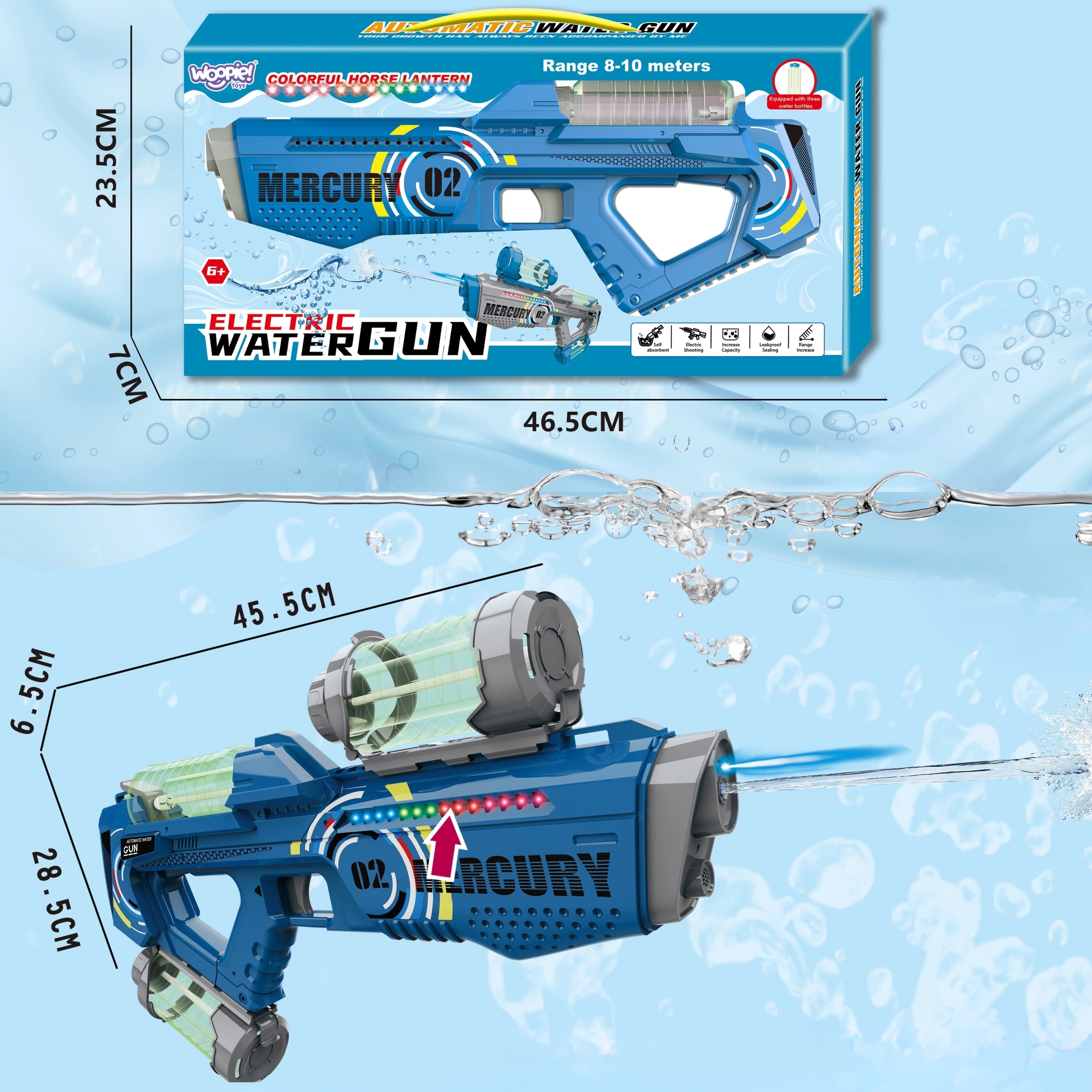 Izbaudi vasaru pilnā sparā ar elektrisko ūdens pistoli WOOPIE MERCURY 02! Tā piedāvā automātisku šļakstīšanu bez pumpēšanas, jaudīgu 2200 mAh akumulatoru, 3 nomaināmus ūdens rezervuārus un USB uzlādi. Lieliska izvēle bērniem no 6 gadiem un pieaugušajiem – dārzā, pie ūdens vai jautrām kaujām.