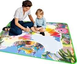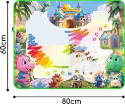Atklājiet rotaļīgu zīmēšanu bez traipiem uz apģērba un mēbelēm. Šis lielais ūdens paklājiņš ar dinozauru motīvu veicina kreativitāti, iztēli un sīko motoriku. Zīmē tikai ar ūdeni – bez krāsām un parastajiem flomasteriem, kas varētu nosmērēt apkārtni. Pēc neilga laika zīmējumi paši izzūd, tādēļ paklājiņu var izmantot atkārtoti.