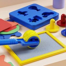 Komplektā ir bagātīgs piederumu klāsts – flomāsteri, rullītis, zīmogiem ar turētāju un šabloni –, kas palīdz bērniem attīstīt sīko motoriku, roku–acu koordināciju un radošumu. Pasteļrozā feju motīvs aicina rotaļāties un mācīties caur spēli.
