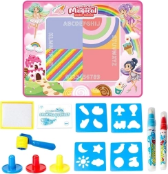 Atklājiet gudru radošumu bez ne pile krāsas. Paklājs izmanto ūdens flomāsterus, kuri uz speciālās virsmas atstāj krāsainas pēdas, kas pēc neilga laika pašas nožūst un pazūd. Pateicoties izmēram 100 × 80 cm, uz tā pietiek vietas arī diviem mazajiem māksliniekiem. Vieglā un kompakti salokāmā konstrukcija nodrošina ērtu pārnēsāšanu un glabāšanu.