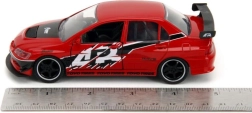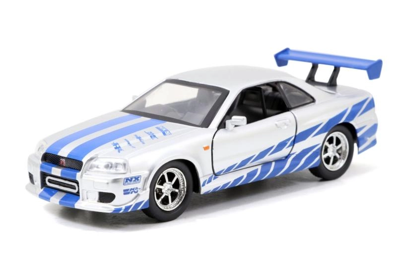 Šis premium dubultkomplekts piedāvā ikoniskus kino auto izcilā izpildījumā: sarkans Lancer Evo IX ar sacīkšu grafikām un izteiksmīgu spārnu, kā arī sudrabains Skyline GT‑R R34 ar zilām joslām. Metāla virsbūve, reālistiskas detaļas un funkcionējošas durvis pastiprina gan kolekcionēšanas, gan spēļu pieredzi.