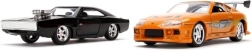Izbaudiet autentisku kino sāgas noskaņu ar rūpīgi izstrādātu divu metāla modeļu komplektu. Toyota Supra ikoniskā oranžā izpildījumā un melnais Dodge Charger ar kompresoru piesaista ar precīzu eksterjeru, kvalitatīvām apdrukām un reālistiski izskatīgiem riteņiem.