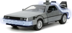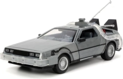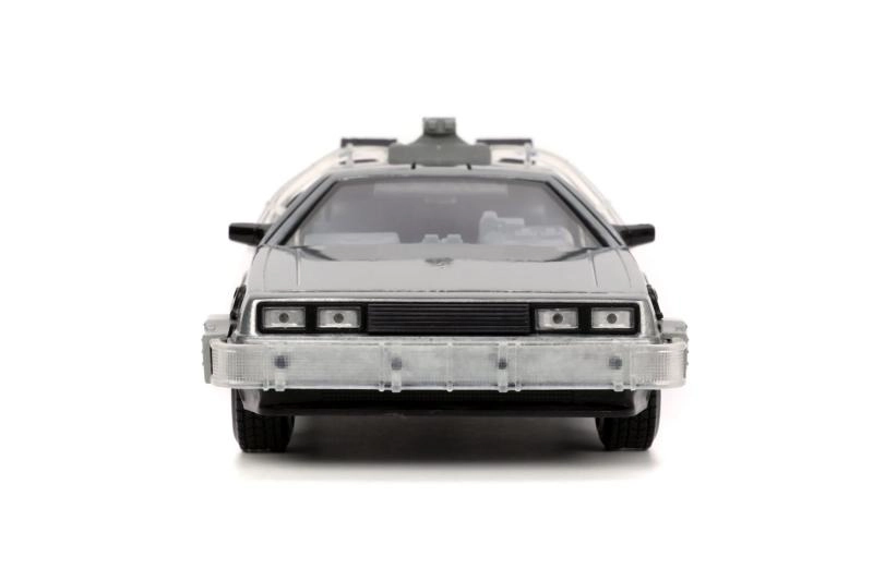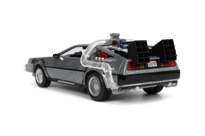 Dodieties laikā ar meistardarbu, kas iedvesmots no filmas ATPAKAĻ NĀKOTNĒ. Šis kolekcionējamais modelis mērogā 1:24 piedāvā reālistiskas proporcijas, bagātīgas eksterjera detaļas un raksturīgos kino auto elementus – no aizmugures thrusteriem līdz izteiksmīgajām “spārnu” durvīm.