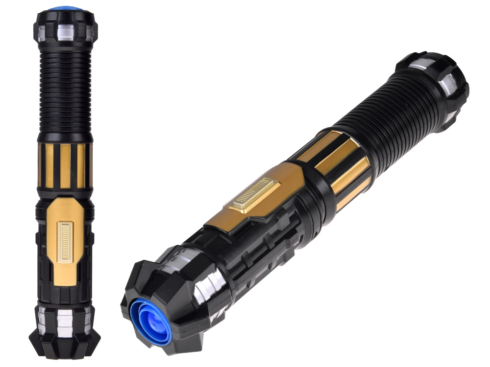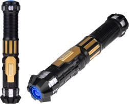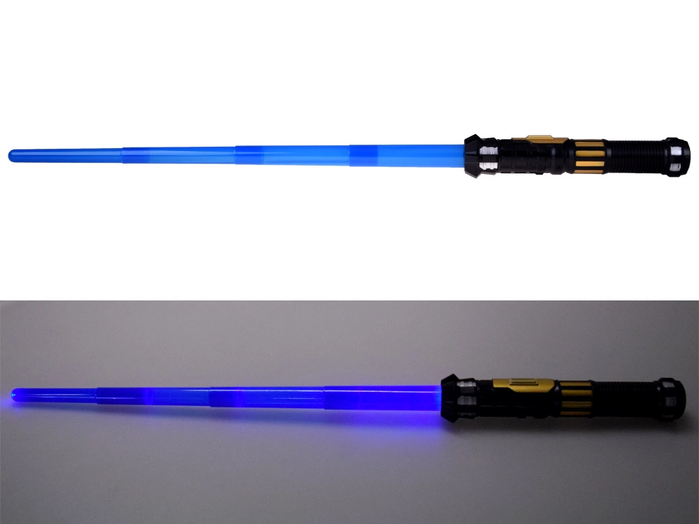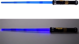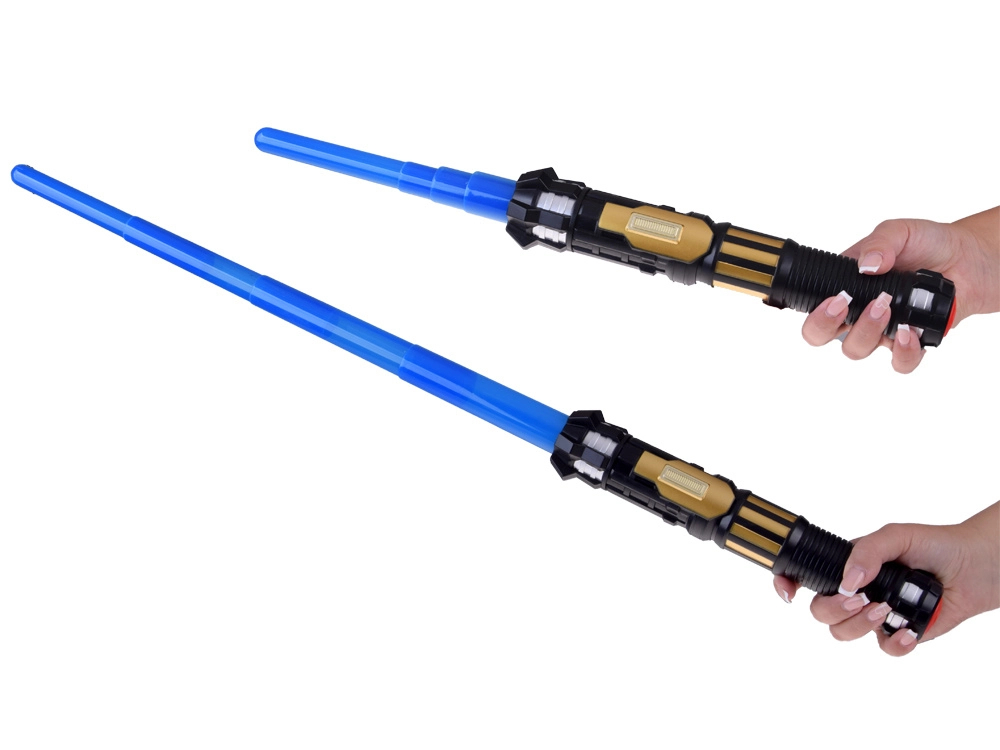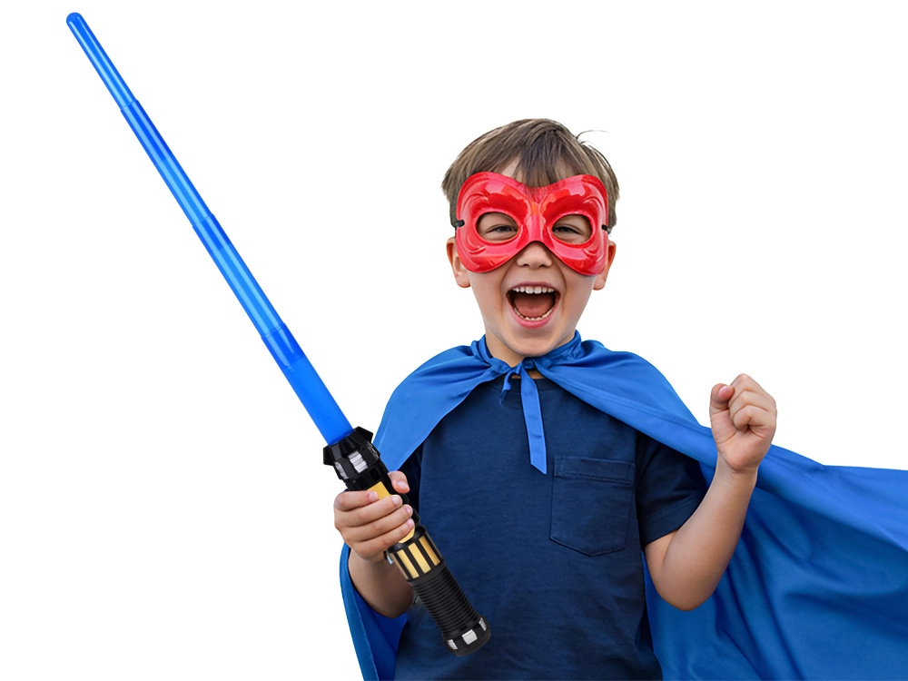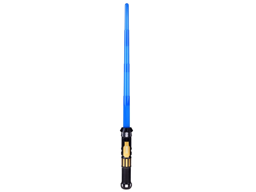 Šis gaismas zobens ir lieliski piemērots visiem mazajiem kosmisko piedzīvojumu cienītājiem. Pateicoties teleskopiskajai konstrukcijai, zobens viegli izslīd ar enerģisku kustību uz priekšu, savukārt roktura poga aktivizē spilgtu zilo asmeni un reālistiskas skaņas. Ideāli piemērots lomu spēlēm, masku ballēm un mājas dueļiem pilniem ar iztēli.