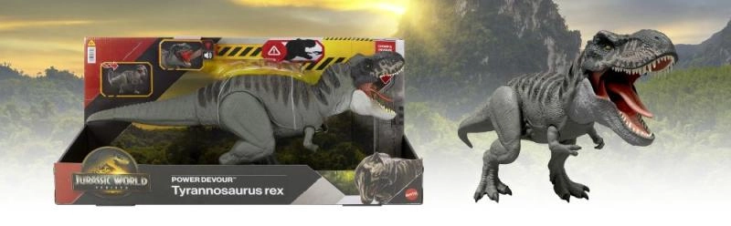 Izbaudiet asa sižeta izklaidi ar ikonisko T‑Rex no JURASSIC WORLD. Šis lielais 53 cm modelis piedāvā nepārtrauktu košanu, gaismas efektus un biedējošus rēkoņus. Ar vienu mēles slēdža pieskārienu T‑Rex ierēc, bet, to pieturot, sākas neganta košanas secība ar skaņu un gaismu. Ar kustīgu asti var mainīt uzbrukumus no dažādiem virzieniem. Ideāla dāvana bērniem no 4 gadiem un lielisks papildinājums digitālajai kolekcijai lietotnē Jurassic World Play.
