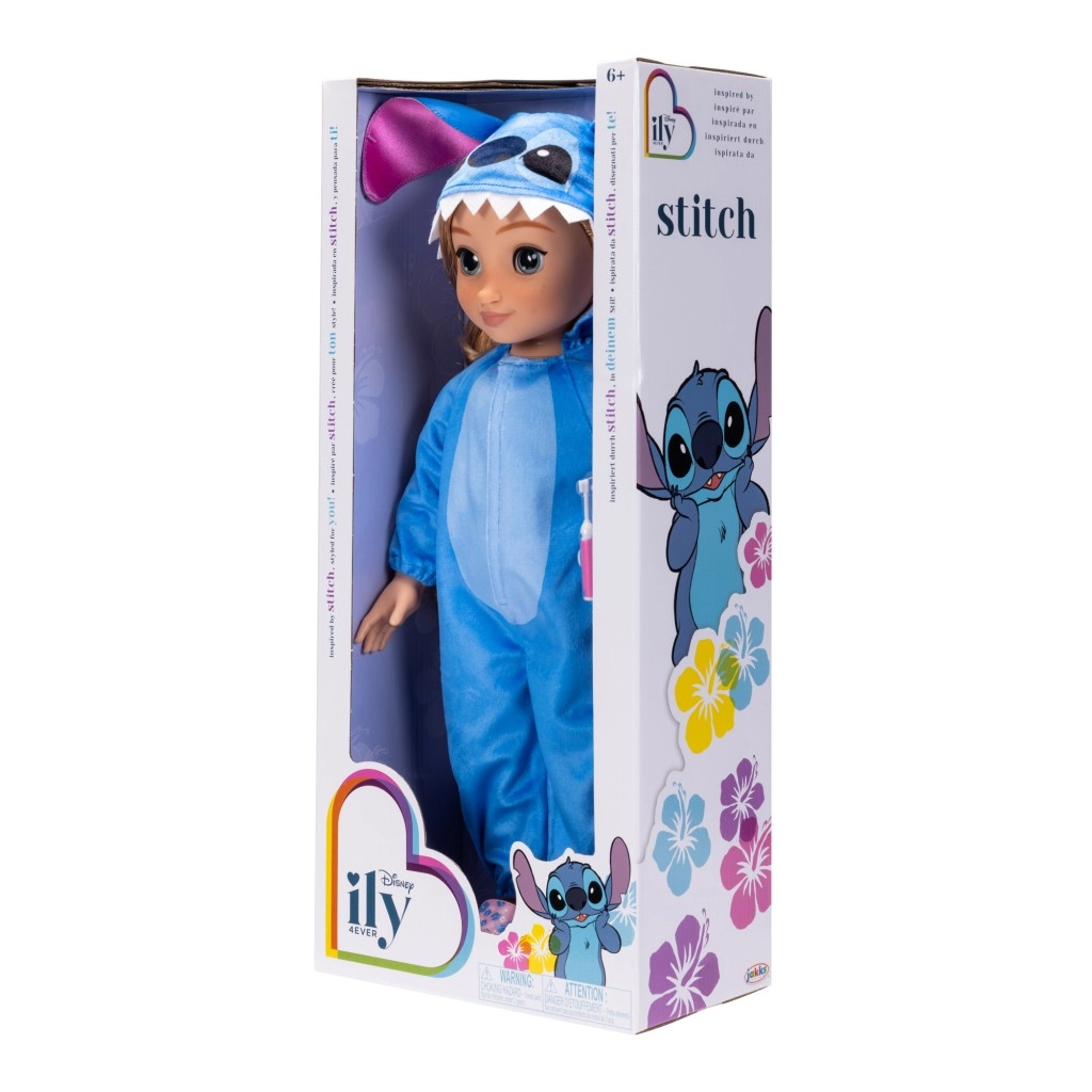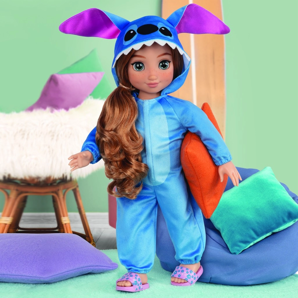 Mīlīga lelle, iedvesmota no Disney varoņa Stitch, aptuveni 45 cm augsta, ar gariem ķemmējamiem matiem un kustīgām ekstremitātēm. Stilīgs zilas krāsas kombinezons ar rāvējslēdzēju un kapuci ar austiņām veicina radošu spēli, pārģērbšanos un pozēšanu. Brīnišķīga draudzene mīļošanai, matu stilam un ikdienas piedzīvojumiem.
