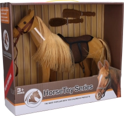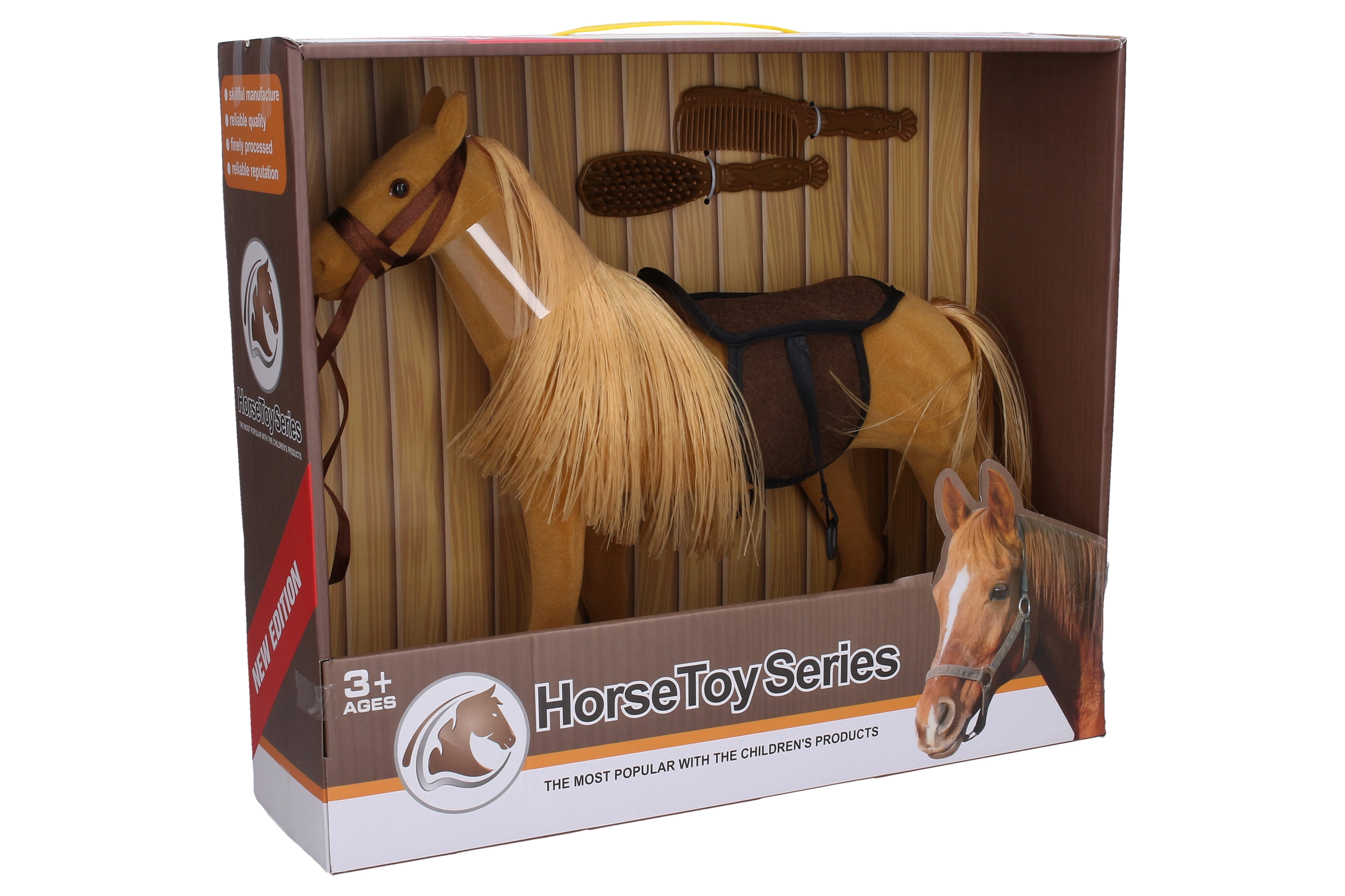 Šis mīkstais un patīkamais pūkainais zirgs ir ideāli piemērots gan samīļošanai, gan fantāzijas spēlēm. Pateicoties pievienotajiem segliem un divām ķemmēm, bērni var izmēģināt zirga kopšanu, attīstīt sīko motoriku un izdomāt savus stāstus.