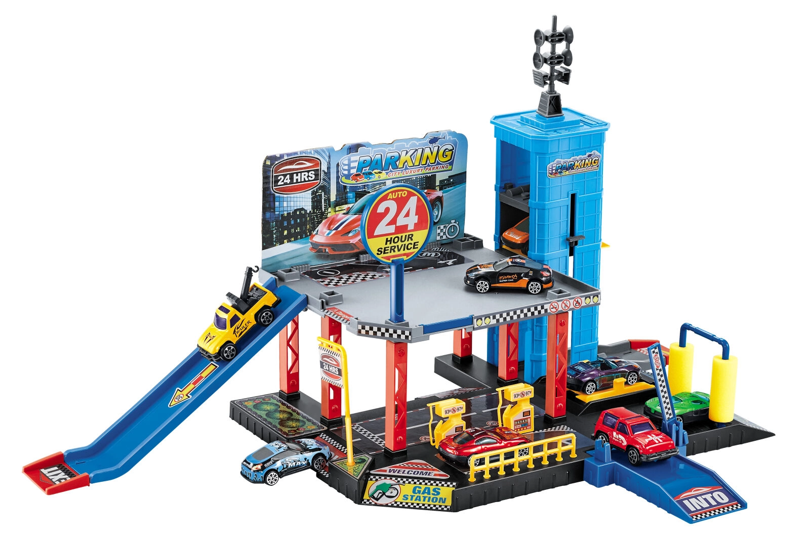 Atklājiet stāvvietu, uzpildes un ātras braukšanas pasauli ar garāžu, kas attīsta bērnu fantāziju un sīko motoriku. Pateicoties liftam, bērni viegli pārvietos mašīnītes starp stāviem, bet degvielas uzpildes stacijā tās varēs uzpildīt pirms nākamā brauciena.