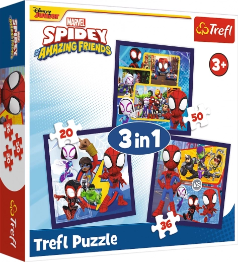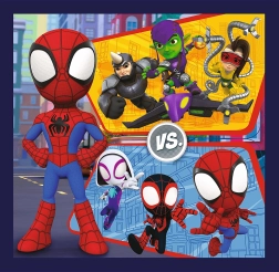 Bērnu puzzle komplekts 3-vienā ar Spidey, zirnekļiem un dinozauriem piedāvā trīs attēlus ar 20, 36 un 50 gabaliņiem. Lieliski attīsta loģiku, pacietību un smalko motoriku. Katras saliktās puzles izmērs ir apmēram 20 × 19,5 cm.